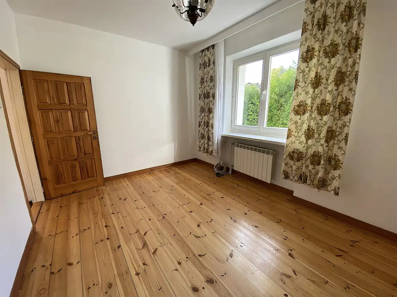 Otwarta przestrzeń z ogromnym potencjałem aranżacyjnym — możliwość stworzenia pracowni, pokoju zabaw lub przytulnego salonu z widokiem na ogród.