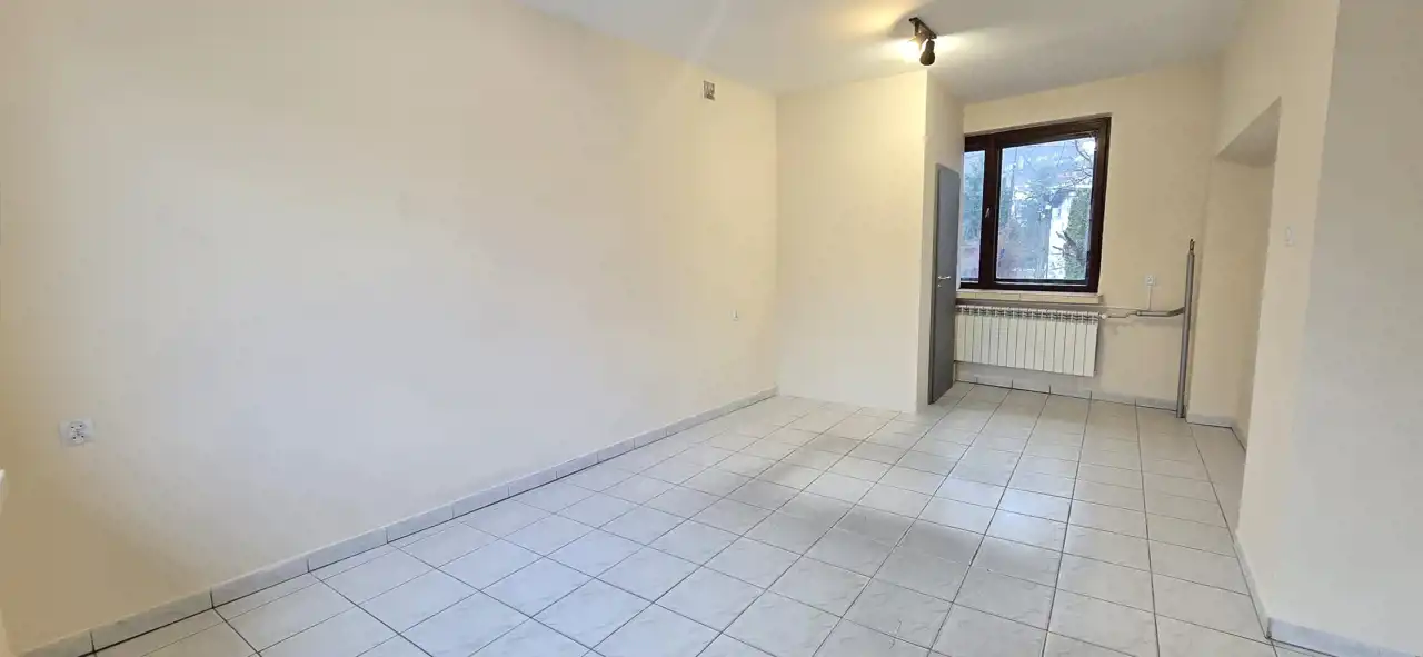 W na podaną powierzchnię składa się pomieszczenie główne oraz niewielki sanitariat.