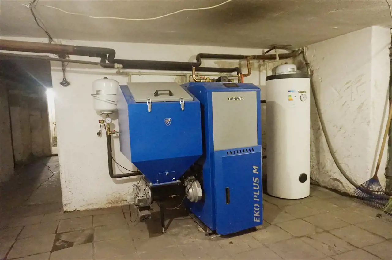 - pełne podpiwniczenie - w kotłowni piec klasy V na eko groszek z podajnikiem wymieniany w zeszłym roku