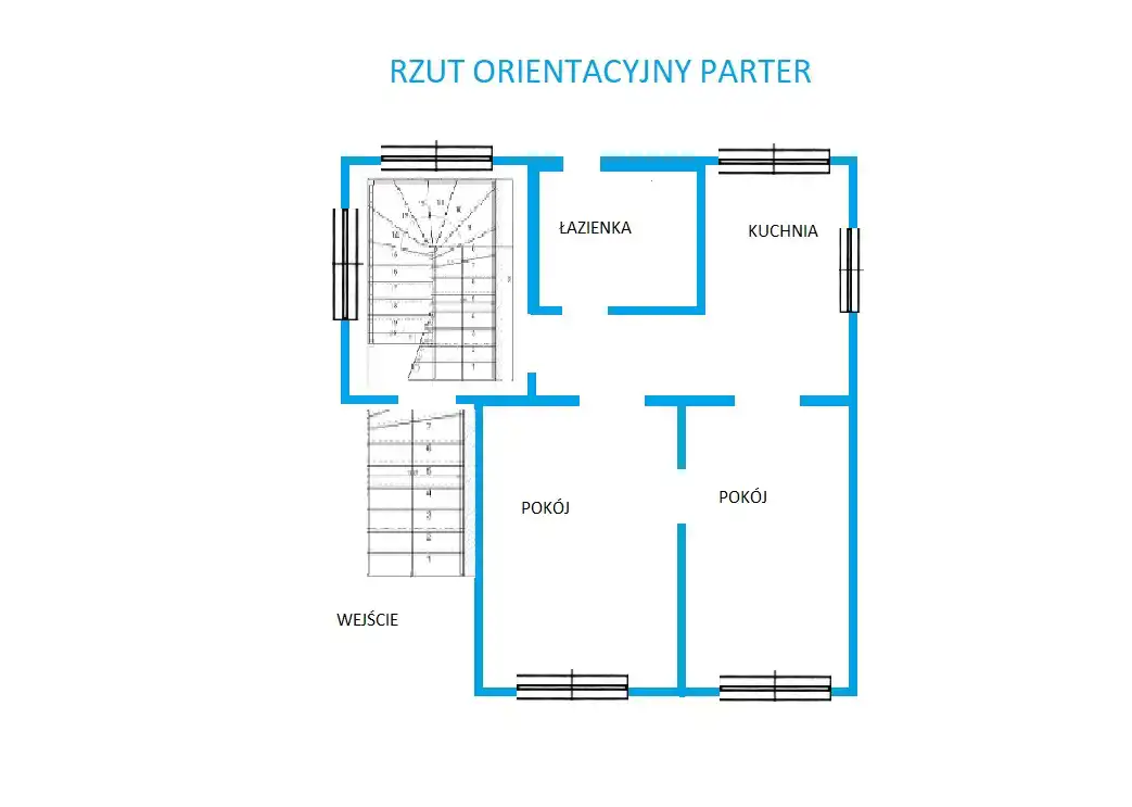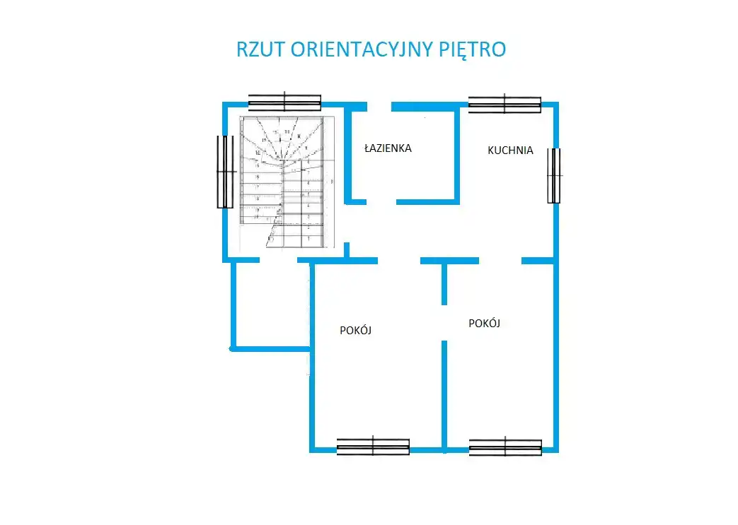 - piętro - mieszkanie składające się z 3 pokoi , kuchni, łazienki, przedpokoju