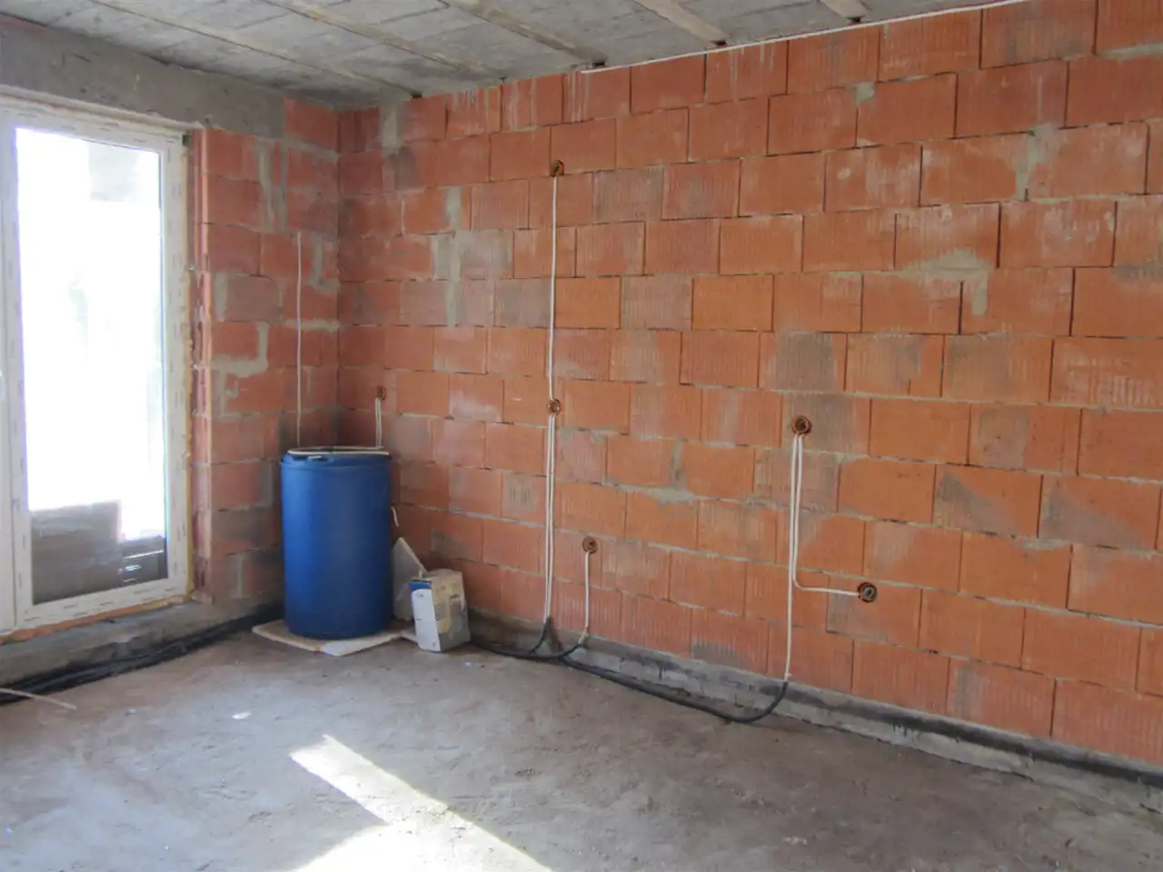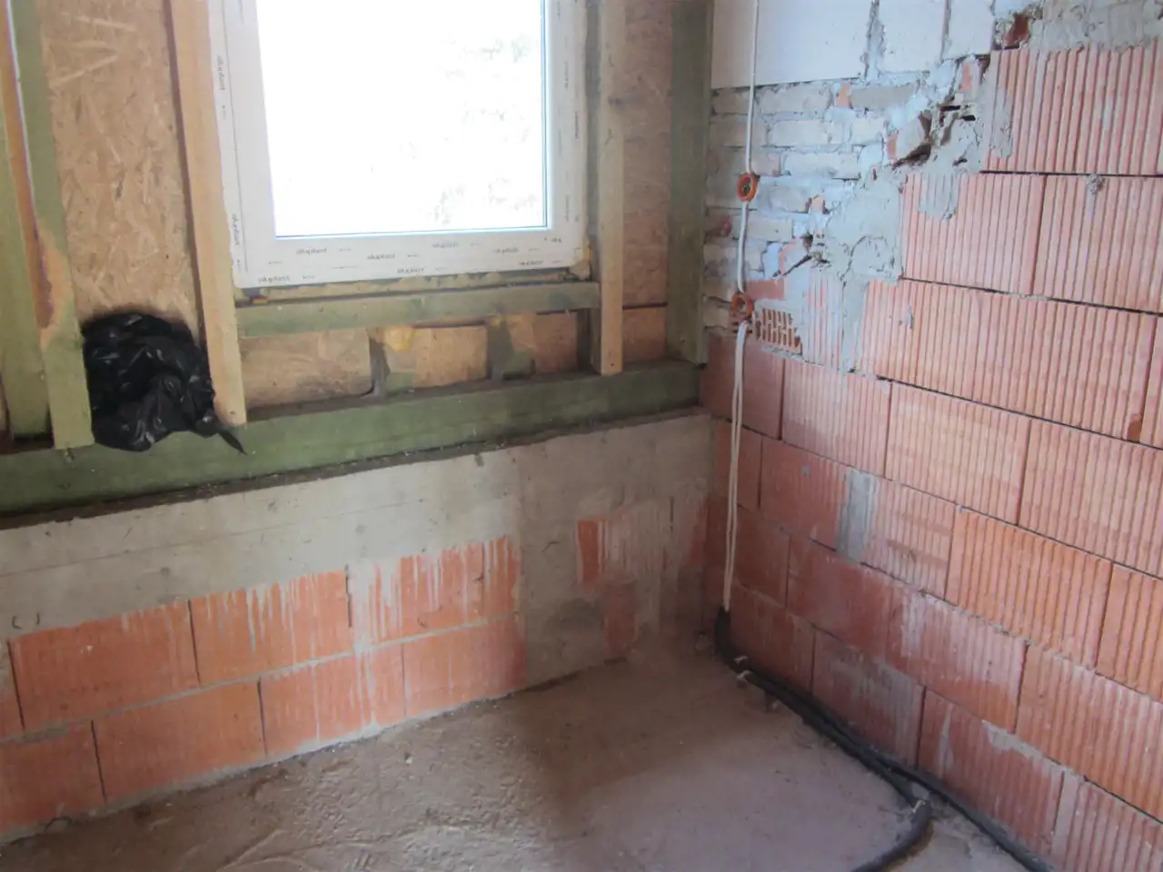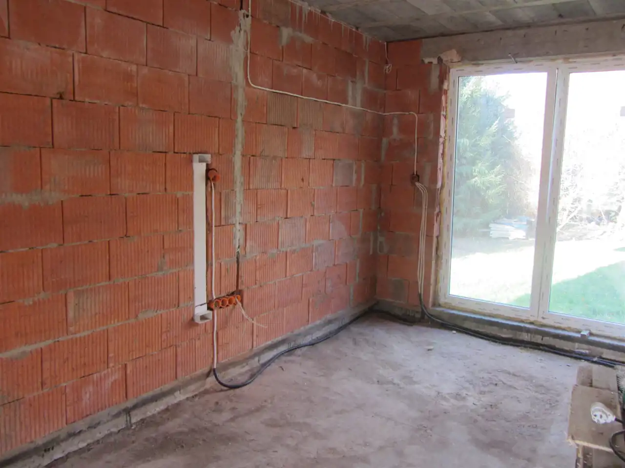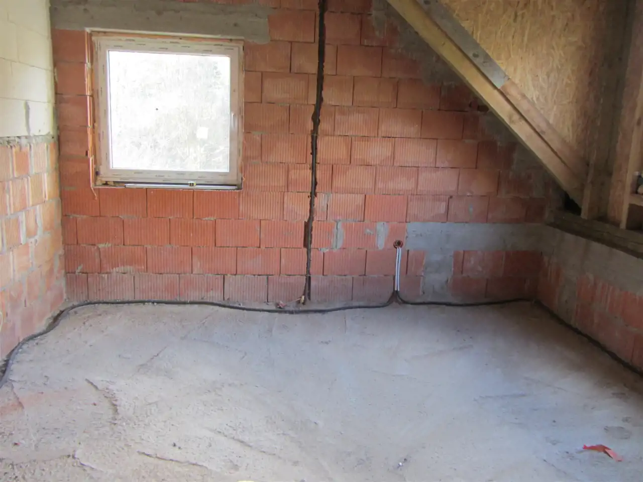 Składa się z salonu połączonego z kuchnią plus łazienka i kotłownia. Na I piętrze są 3 sypialnie i łazienka. Rozciągnięta jest instalacja elektryczna, budynek ocieplony 15 centymetrową warstwą styropianu.