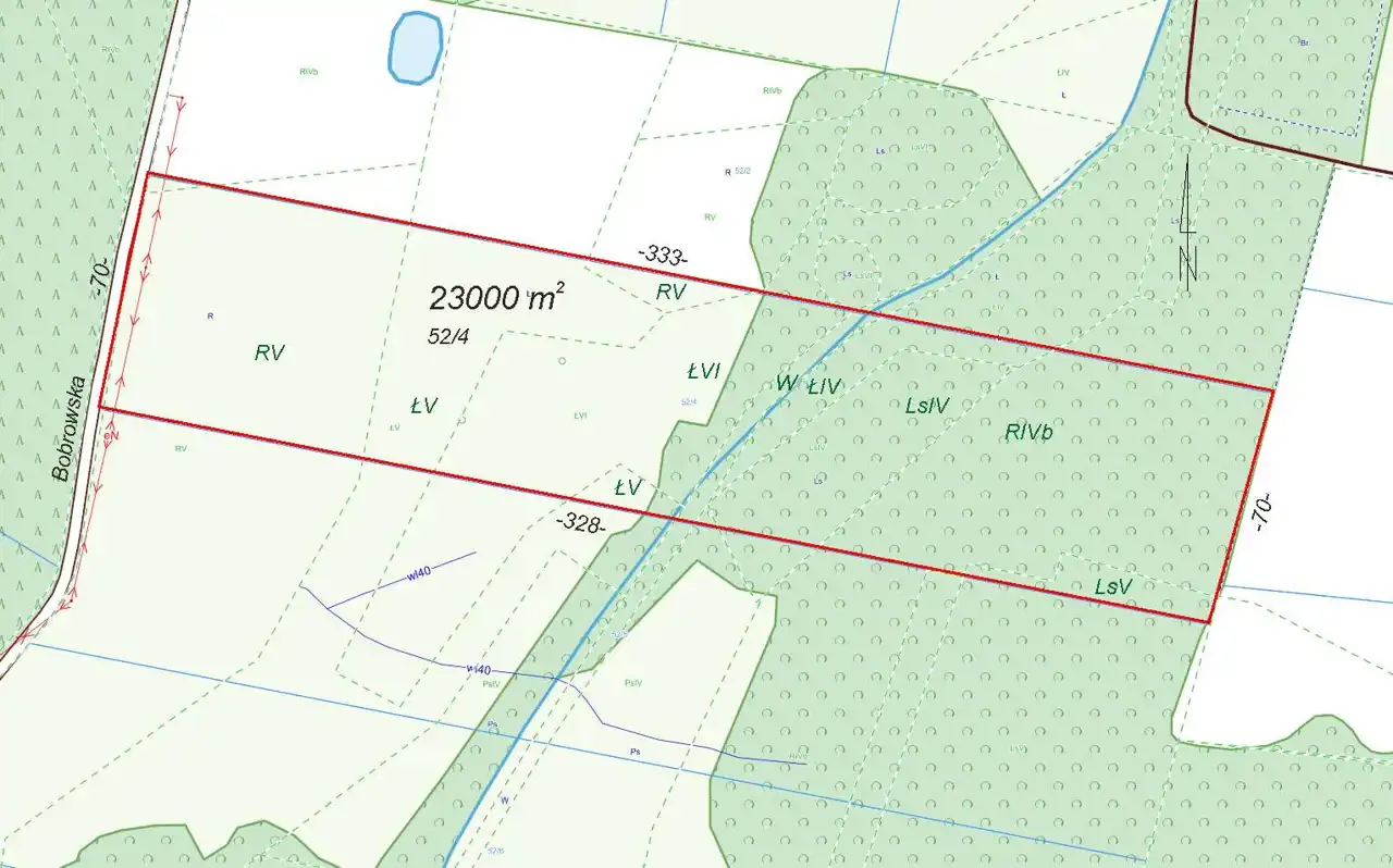 Działka siedliskowa, rolno-leśna 23000 m2 w miejscowości Suszeniec k. Mszczonowa. Proporcjonalna, o średnich wymiarach 70x330 m, krótszym bokiem do utwardzonej drogi gminnej, w której jest prąd. Brak planu zagospodarowania przestrzennego, ale działka spełnia kryteria uzyskania warunków zabudowy zagrodowej, tzn. na dom mieszkalny i zabudowania gospodarcze. W rejestrze gruntów tereny rolne IV, V i VI kl, rów W oraz w głębi działki ok. 2800 m2 lasu Ls. Działka sucha, równa, płaska, do połowy długości pusta z pojedynczymi drzewami, w głębi zadrzewiona i zalesiona głównie brzozą i sosną. Wokół dużo zieleni i pojedyncze zabudowania. Wygodny dojazd samochodem zarówno z Mszczonowa i Tarczyna, jaki z Warszawy.