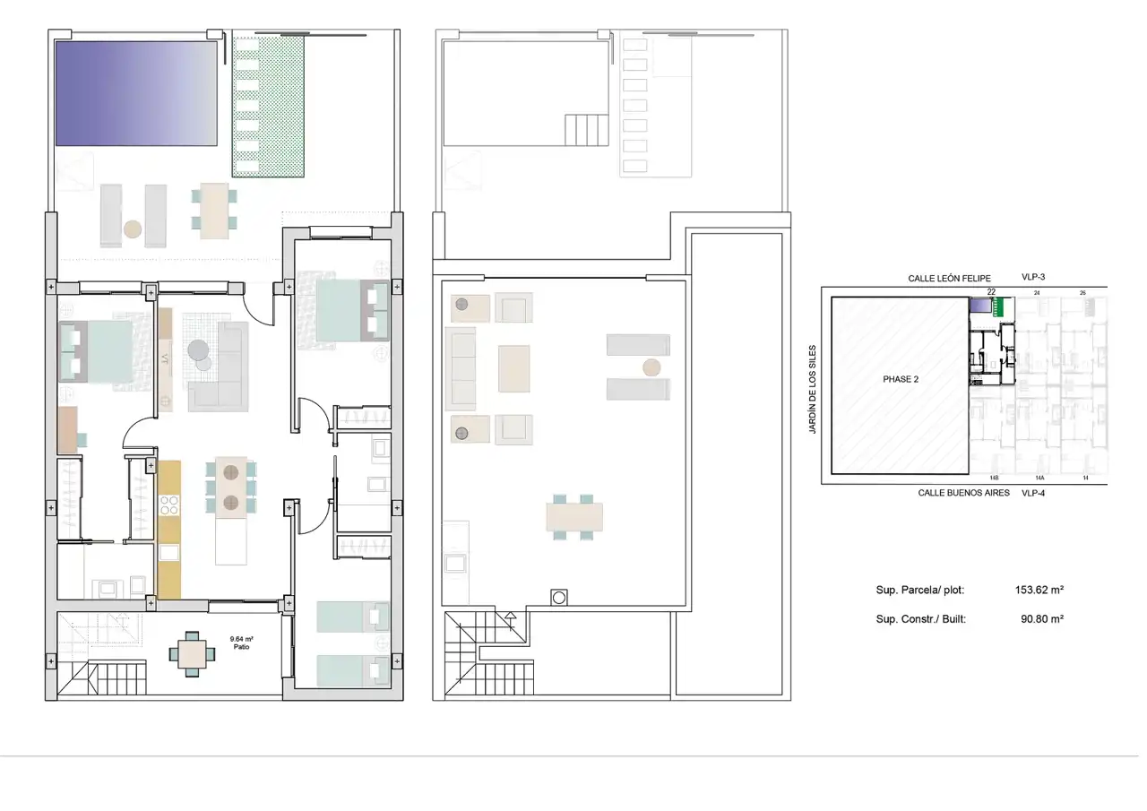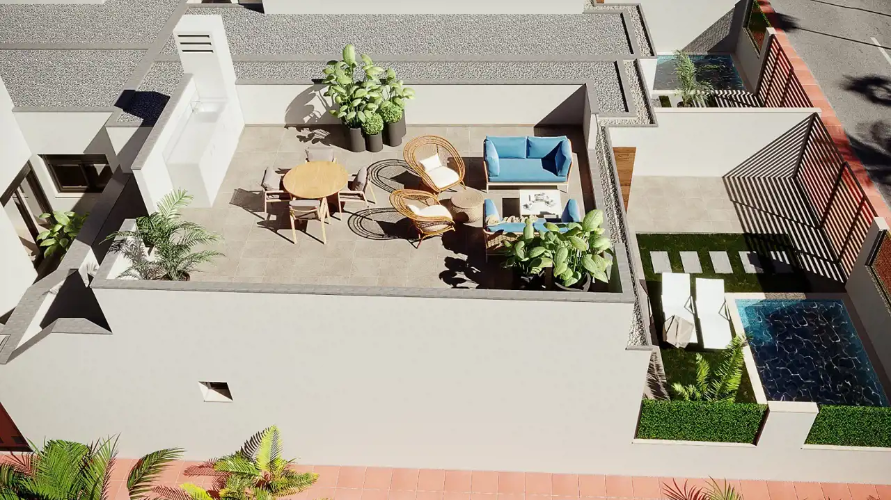 BESTATE NIERUCHOMOŚCI oferuje na sprzedaż wille w Dolores de Pacheco, w Murcji. Powierzchnia każdej wynosi 90,80 m2. Posiadają 3 sypialnie oraz 2 łazienki. Residential Vela Latina Pueblo, to luksusowy kompleks 6 jednopoziomowych willi szeregowych z prywatnym basenem dla każdego domu. Domy zaprojektowano na jednym poziomie z tarasami na parterze i dużym solarium na piętrze. Zaprojektowany w nowoczesnym stylu i otwartej koncepcji, obejmujący kuchnię i salon z jadalnią.