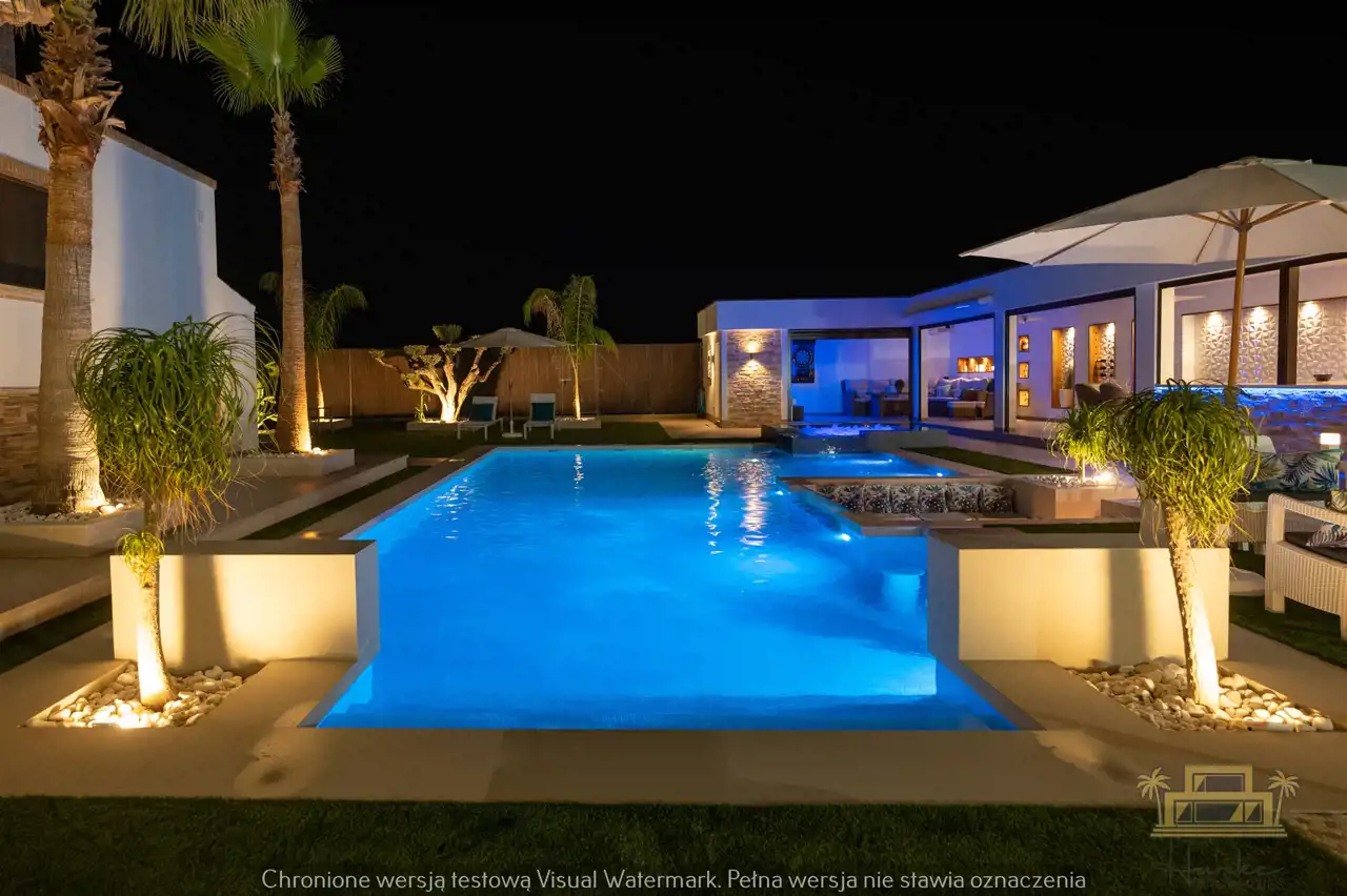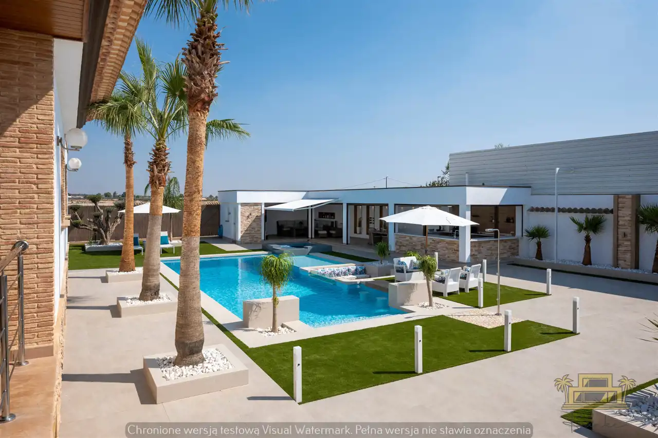 Nieruchomość położona na działce o powierzchni 1241m2 na którą składa sie ogród o powierzchni 602m2 , 75m3 basen z odzielnym jacuzzi, 90m2 strefy relaksu.
