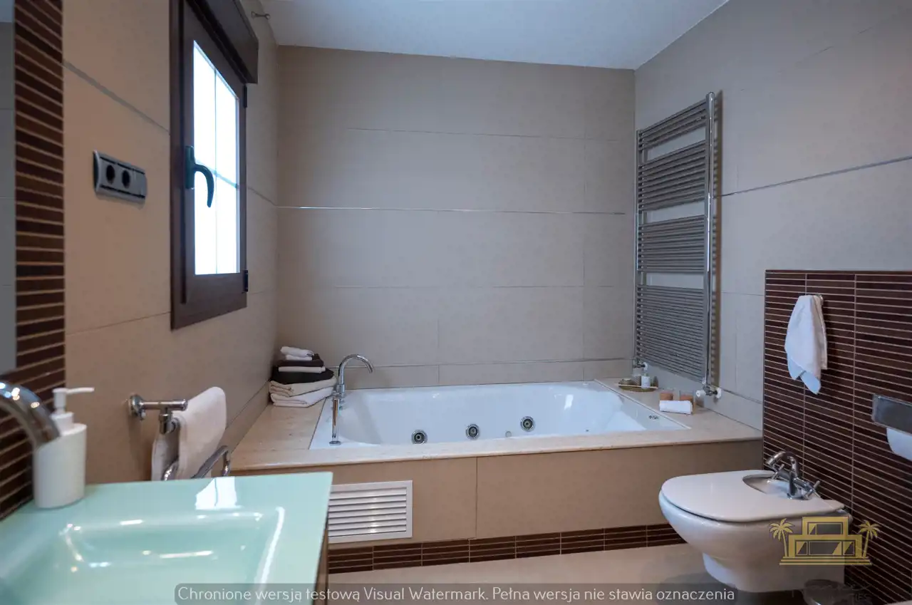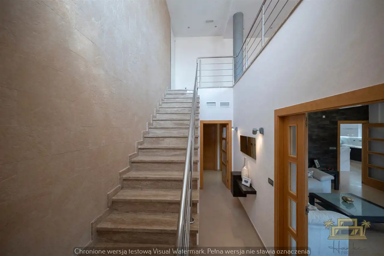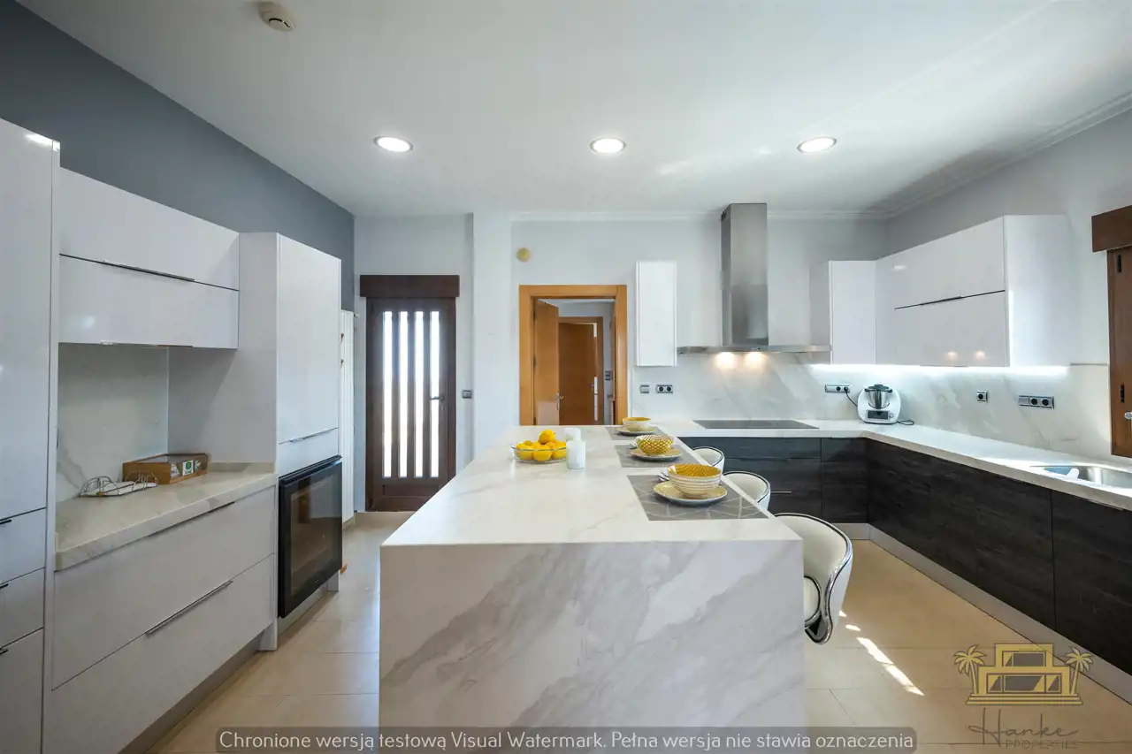 Nieruchomość w 2021 r. zostałała gruntownie wyremontowana. Dom w pełni umeblowany, parter 190m2, piwnica 340m2. Znajdziemy tu 4 sypialnie połozone na tym samym poziomie, oddzielną w pełni umeblowaną kuchnię ze sprzętem AGD, 3 łazienki ( jedna z nich znajduje się na zewnątrz) oraz zamkniętą wyposażoną pralnię a na piętrze drugi przestronny salon. W piwnicy podziemny garaż, siłownia, salon piękności i SPA.