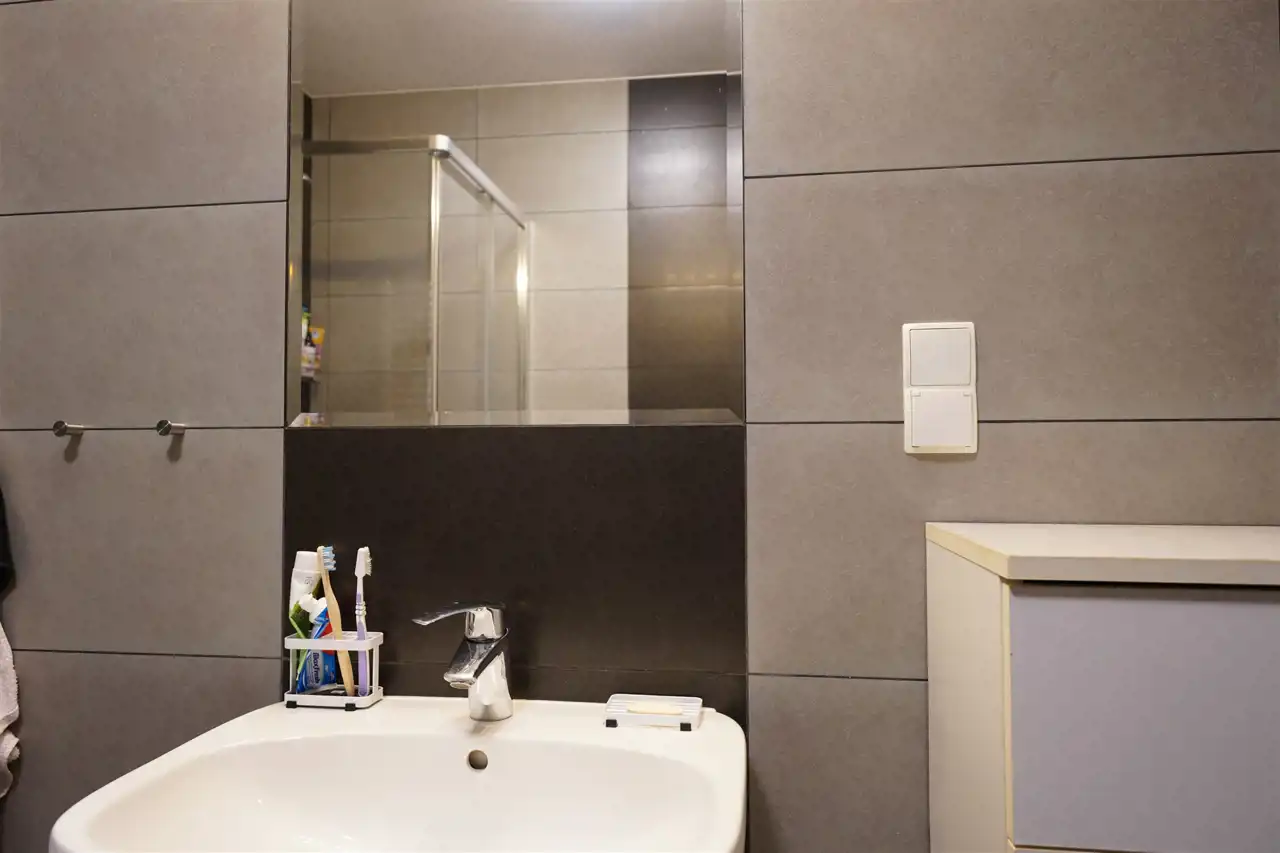 łazienka wyposażona w kabinę prysznicową oraz z Wc oraz garderoba.