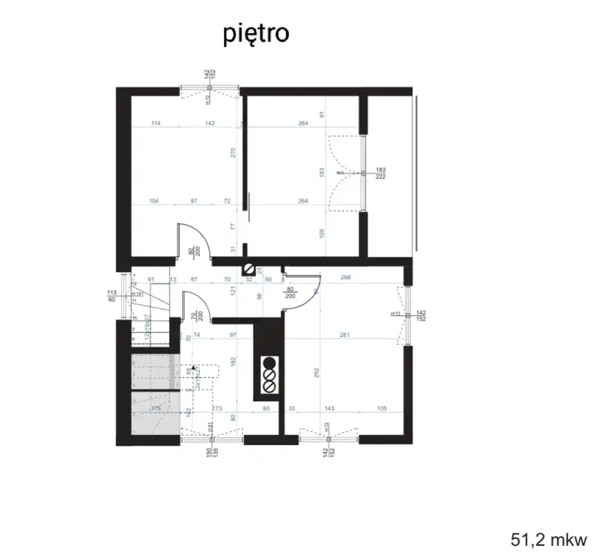 3 kondygnacja z 3 pokojami oraz łazienką i komunikacją.