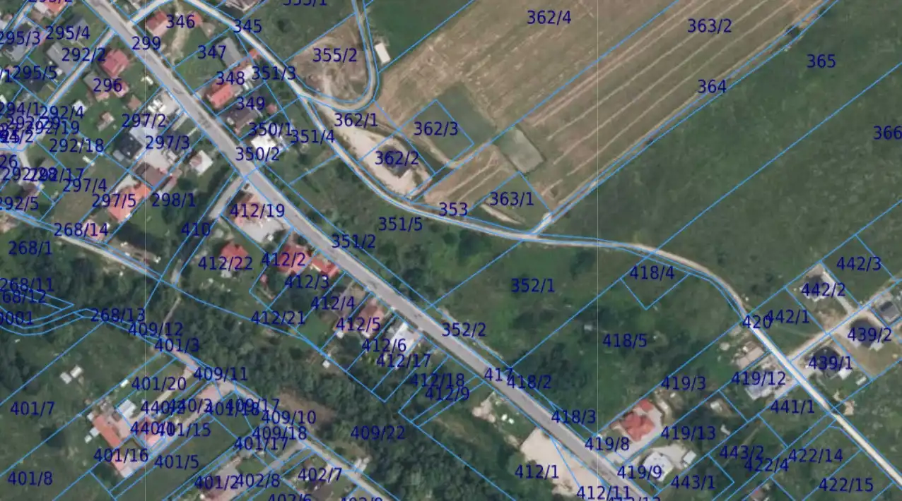 - Działka Niezagospodarowana, lekko nachylona, prostokąt