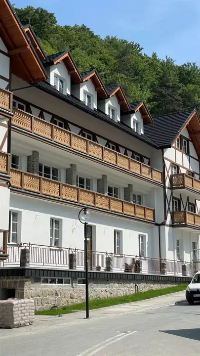 Na sprzedaż 30 apartamenty mieszkalne w stanie deweloperskim zlokalizowane w całkowicie odnowionym budynku w malowniczym Żegiestowie-Zdroju, miejscowości uzdrowiskowej położonej w dolinie Popradu, w sercu Beskidu Sądeckiego i w pobliżu Łopaty Polskiej - jedynego takiego miejsca, który łączy urok górskiego krajobrazu, spokój natury i wyjątkowy mikroklimat, sprzyjający wypoczynkowi i regeneracji.