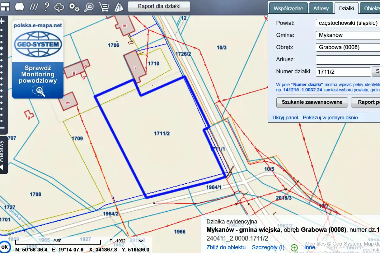 Numer ewidencyjny: 1711/2, obręb Grabowa