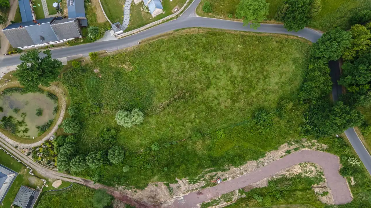 - Działka Niezagospodarowana, lekko nachylona, prostokąt