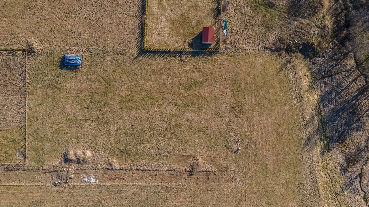 - Media Woda: studnia; Kanalizacja: szambo; Prąd: na działce; Gaz: brak