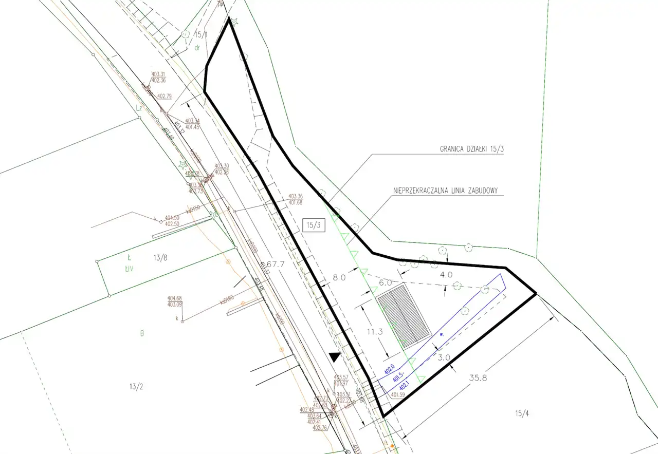 - Działka Niezagospodarowana, lekko nachylona, nieregularny
