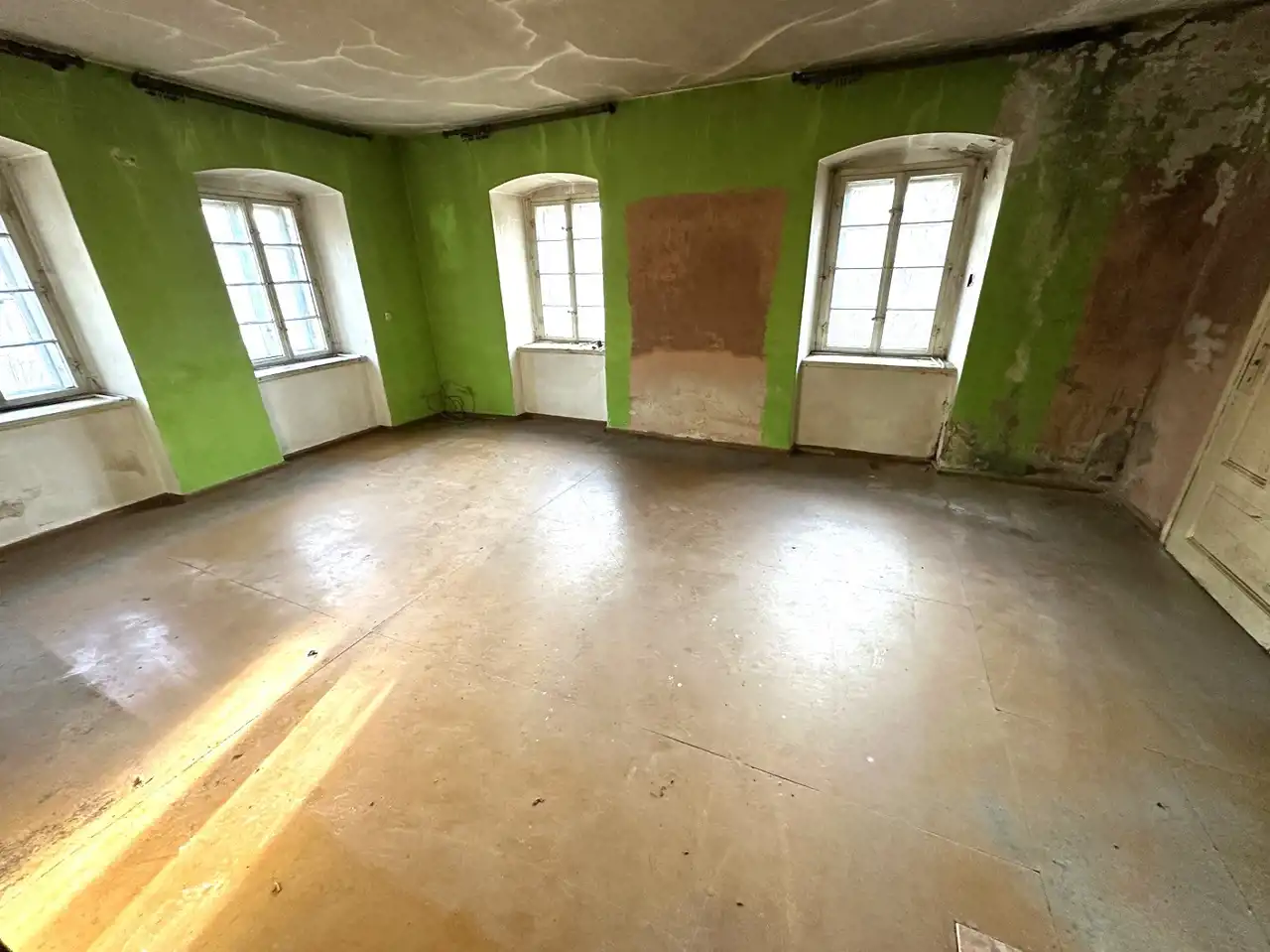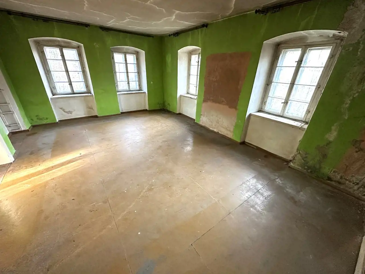 Mieszkanie wymaga generalnego remontu, za to można sobie indywidualnie zagospodarować naprawdę ogromną przestrzeń.