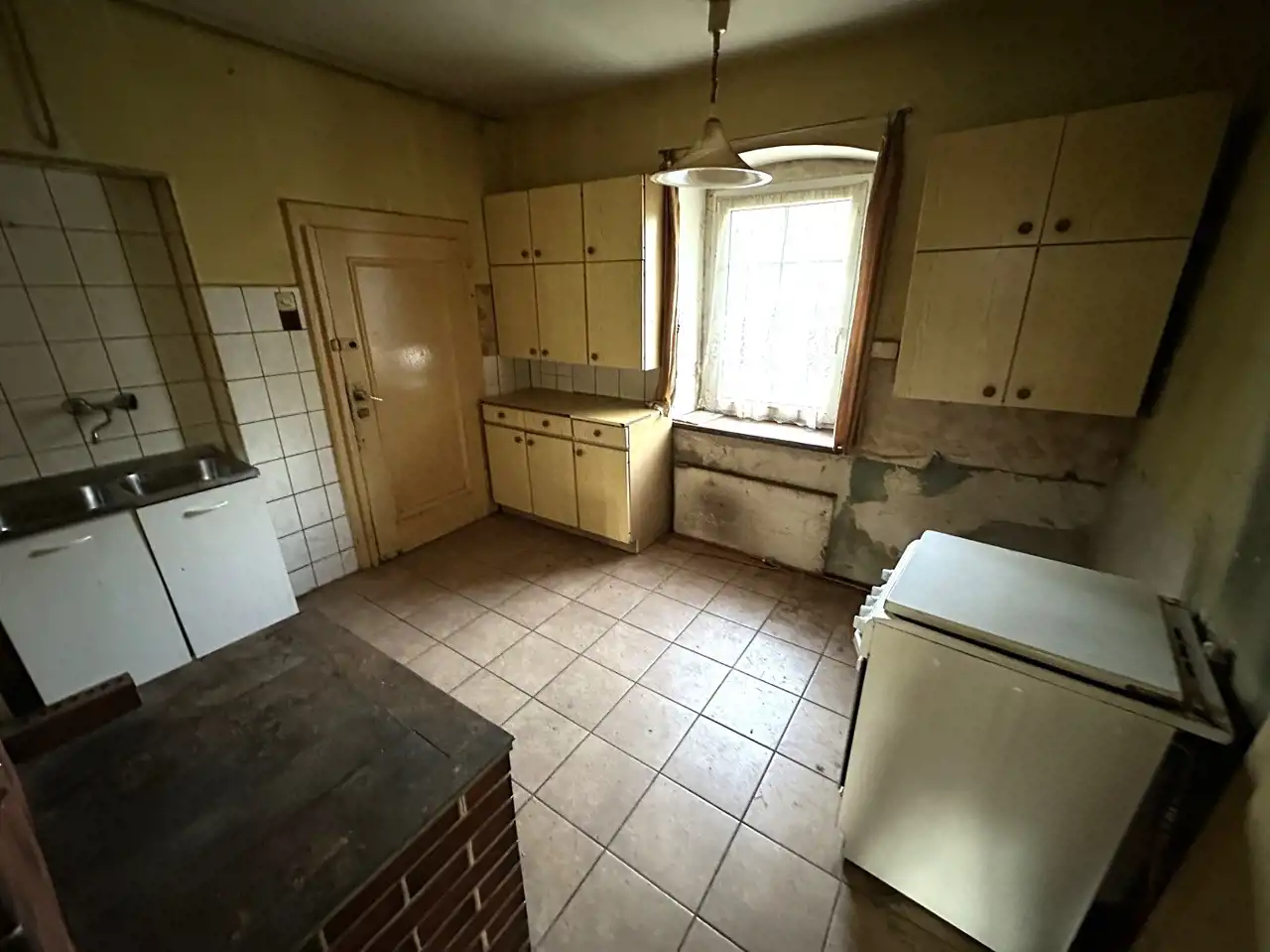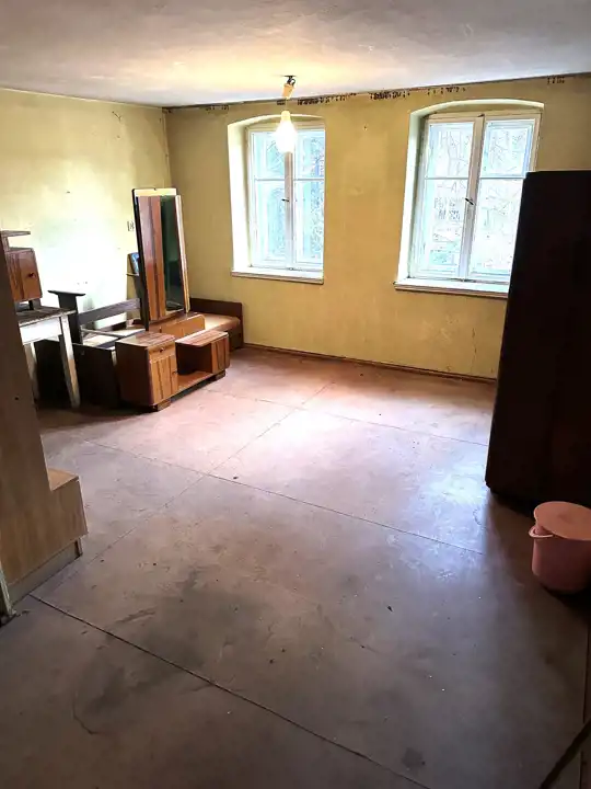 Mieszkanie do generalnego remontu w budynku 3-y rodzinnym znajdujące się na parterze, piętrze i II piętrze (strych) o powierzchni całkowitej 96,20m2 (mieszkanie, strych i piwnica) ze skosami na piętrze i strychu (mierząc po podłodze nieruchomość posiada powierzchnię około 120m2), powierzchnia użytkowa mieszkania z księgi wieczystej 76,60m2, na którą składa się: