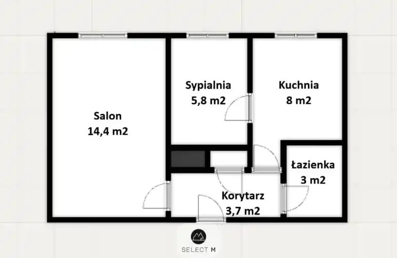 Układ pomieszczeń (2 pokoje) daje solidną bazę pod nowoczesny projekt wnętrza: