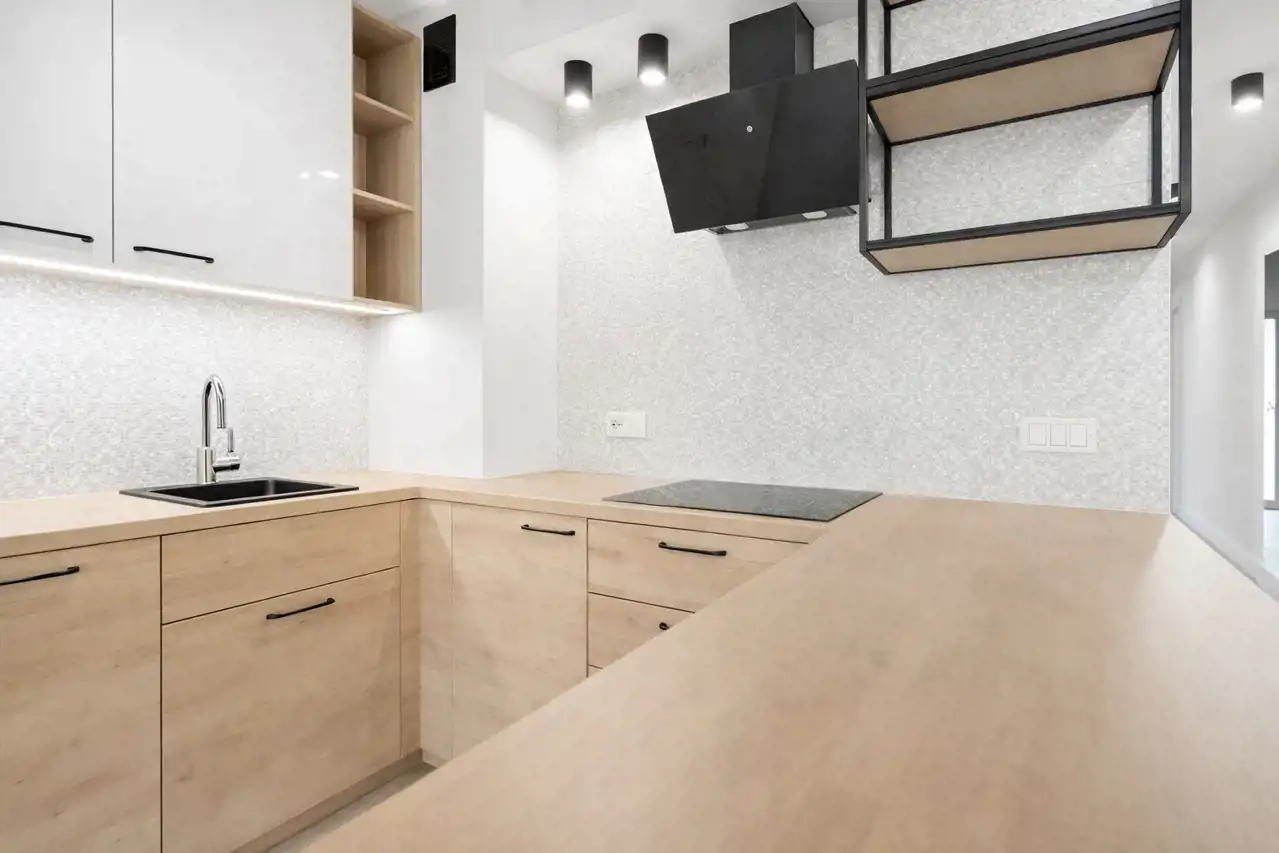 W kuchni także dbałość o każdy element, sprzęt wysokiej jakości marki Whirpool (płyta, piekarnik, mikrofalówka, zmywarka).
