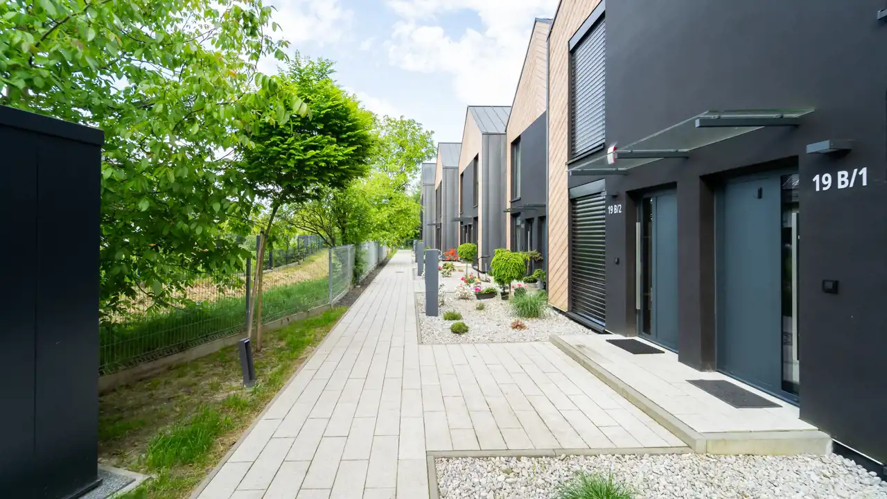 Dom jest środkowym segmentem w zabudowie szeregowej, w urokliwym miejscu, pełnym zieleni i spokoju w sercu myślenickiego Zarabia.