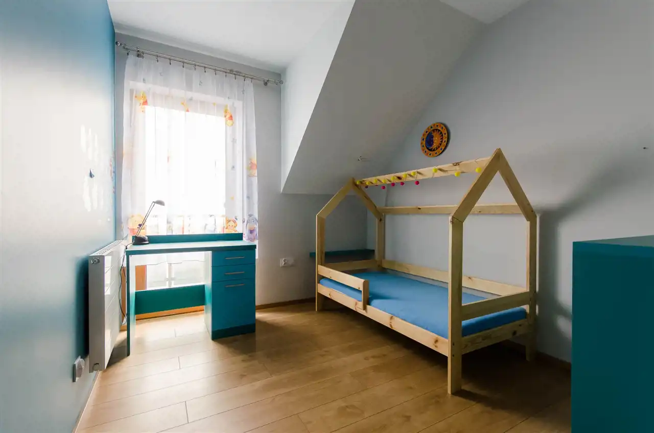 Budynek wybudowany w 2017 roku, zamieszkały od 2018- roku składa się z 3 poziomów: