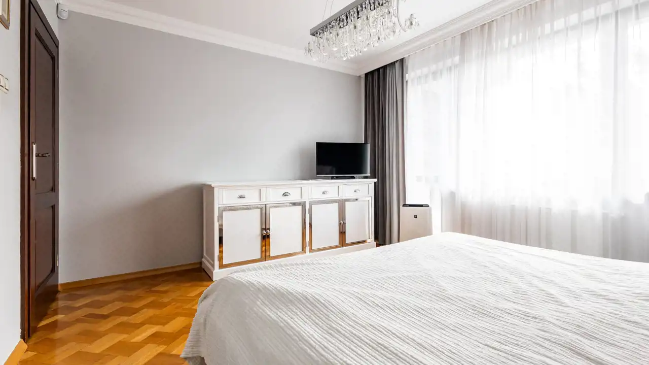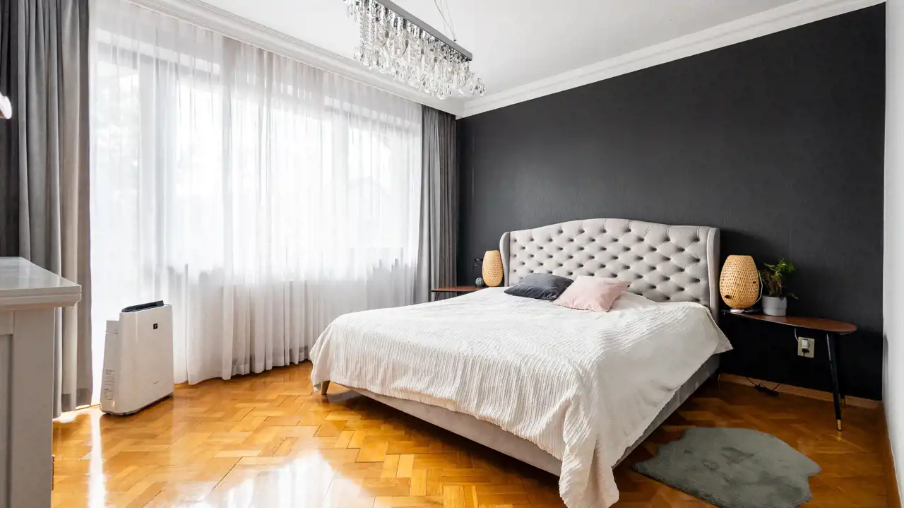 - głównej sypialni razem z garderobą oraz wyjściem na balkon,
