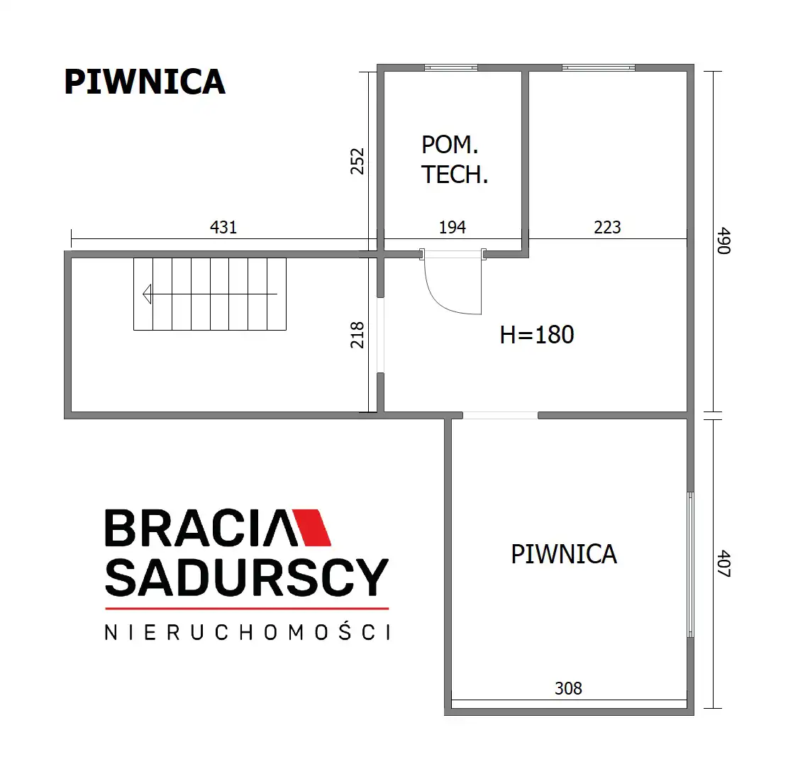 Składająca się z kotłowni oraz dwóch pomieszczeń gospodarczych. Wysokość pomieszczeń w piwnicy 1,8m.