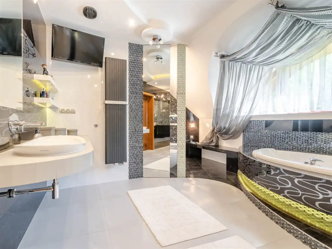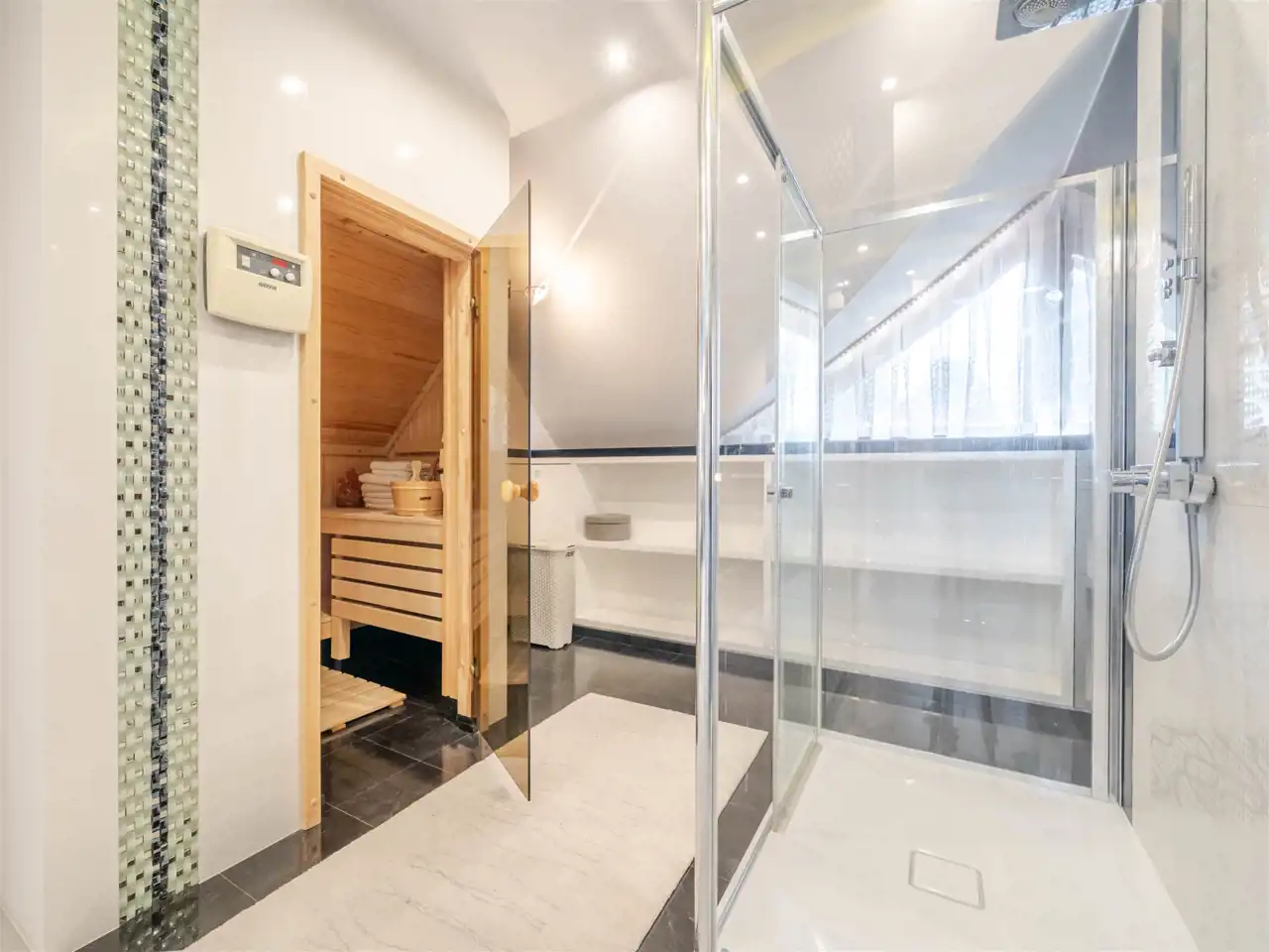 bardzo duża łazienka/WC – pokój kąpielowy z SAUN Ą (wanna plus prysznic i sauna)