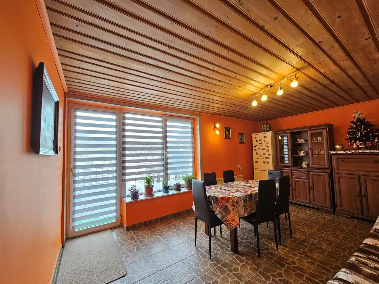 - salon z wyjściem na taras i ogród
