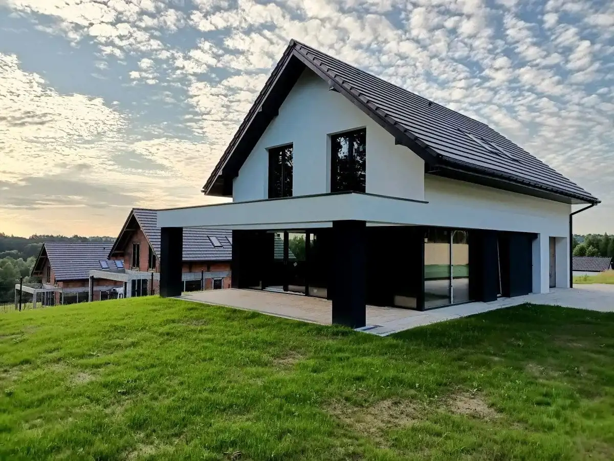 Domy wybudowane tradycyjną metodą z zastosowaniem nowoczesnych rozwiązań takich jak rekuperacja i pompa ciepła - na życzenie.