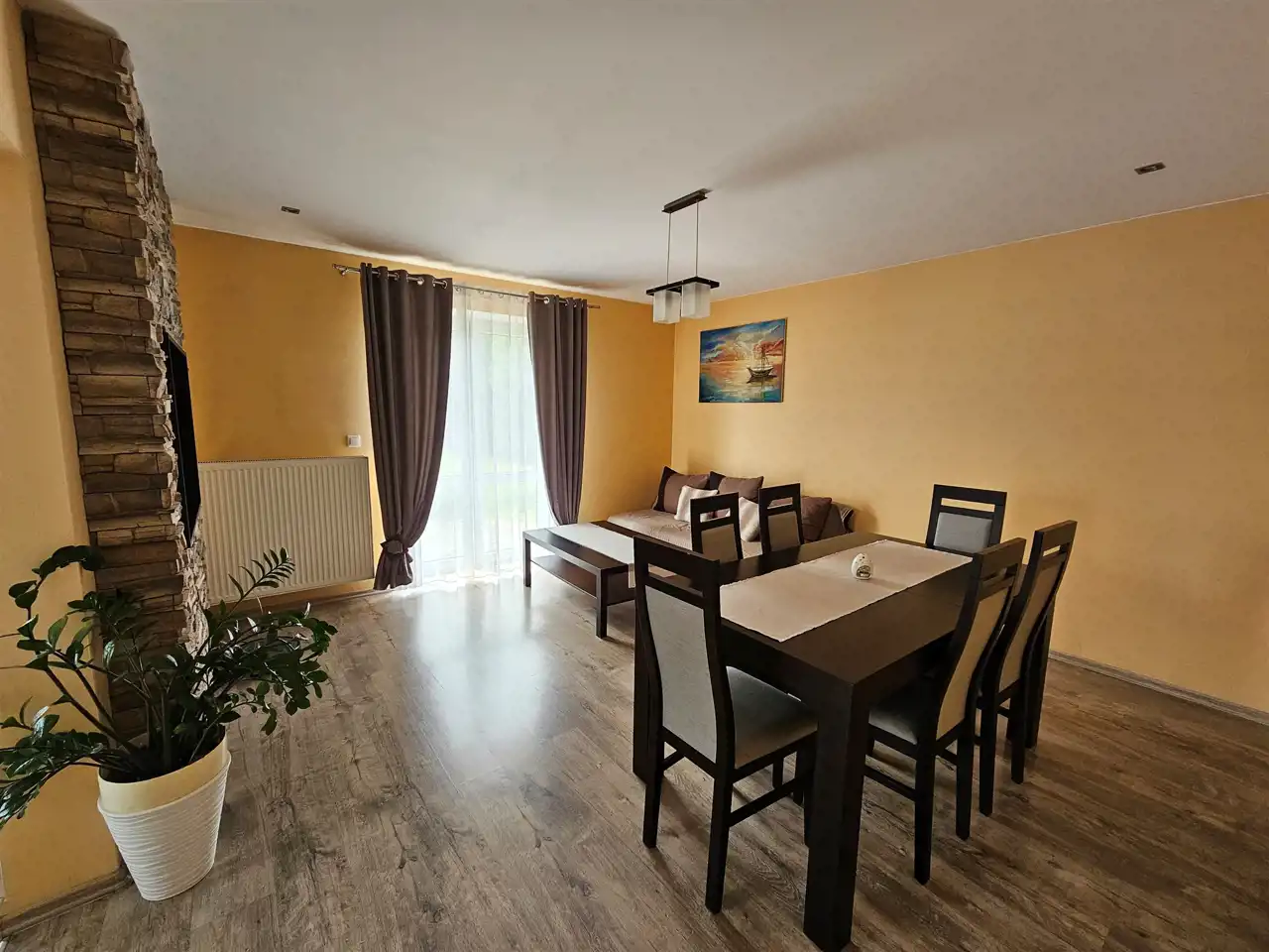 Przestronny salon z wydzieloną jadalnią – idealne miejsce na rodzinne spotkania i przyjęcia