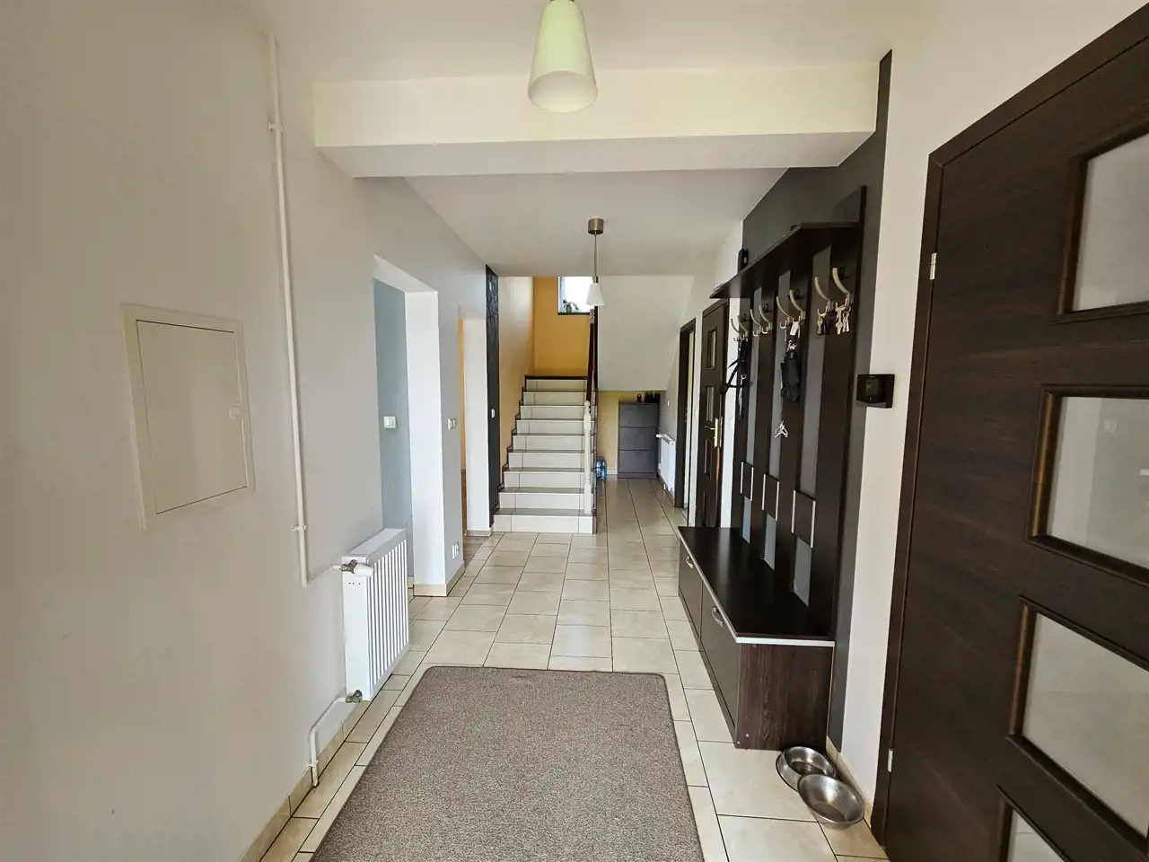 Dom jest gotowy do zamieszkania – wykończony w ciepłym, nowoczesnym stylu. Na podłogach znajdują się panele oraz terakota. W części pomieszczeń zastosowano ogrzewanie podłogowe dla jeszcze większego komfortu.