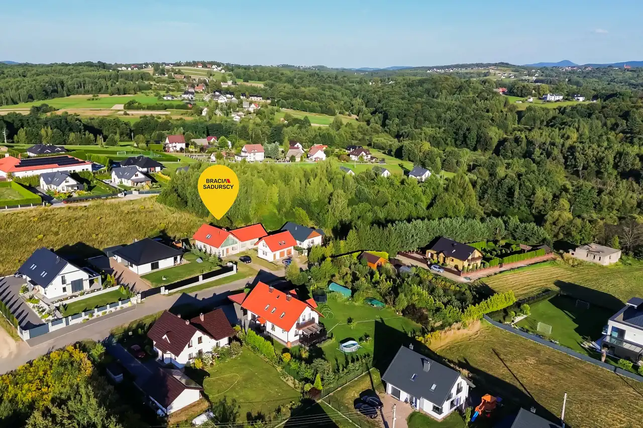 Dom znajduje się w miejscowości Zawada – spokojnej i zielonej, a jednocześnie doskonale skomunikowanej z Myślenicami i Krakowem. To idealne miejsce dla osób, które chcą połączyć bliskość natury z wygodą życia codziennego. Szybki dojazd do Krakowa i Myślenic, w pobliżu sklepy i usługi (Biedronka, Żabka, Pepco, Action),