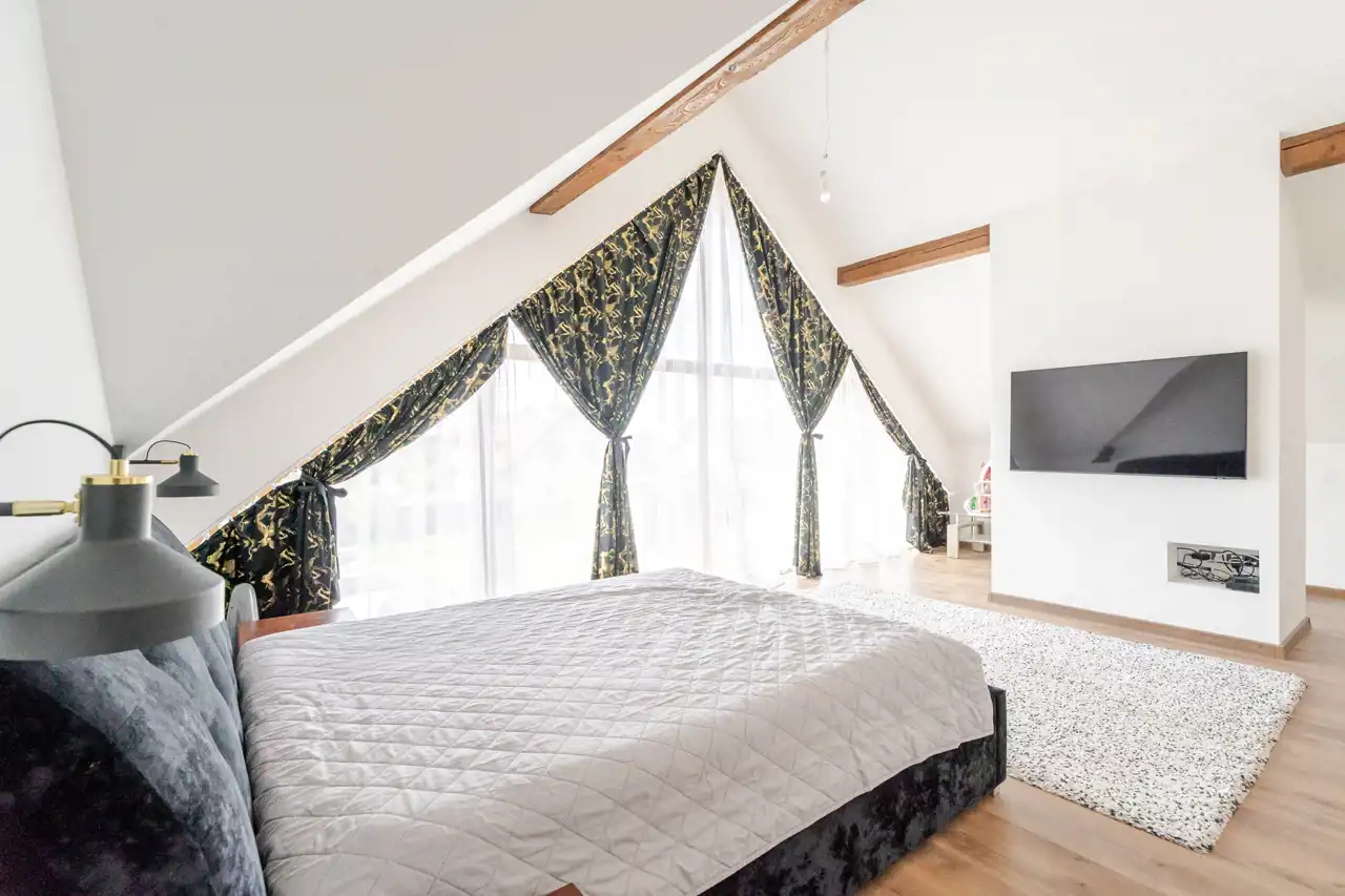 Sypialnia z pięknym przeszkleniem,