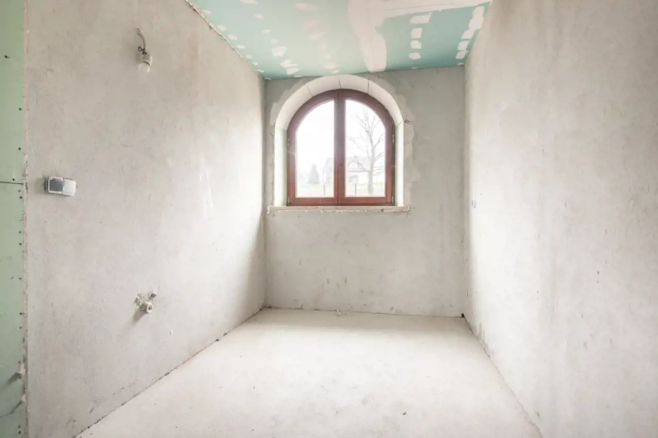 Dom składa się z parteru, piętra oraz poddasza. Wewnątrz wykonano wylewki, tynki,