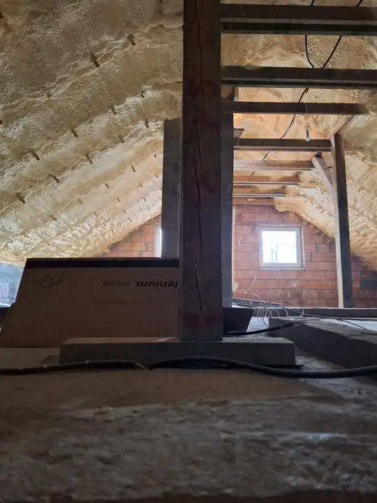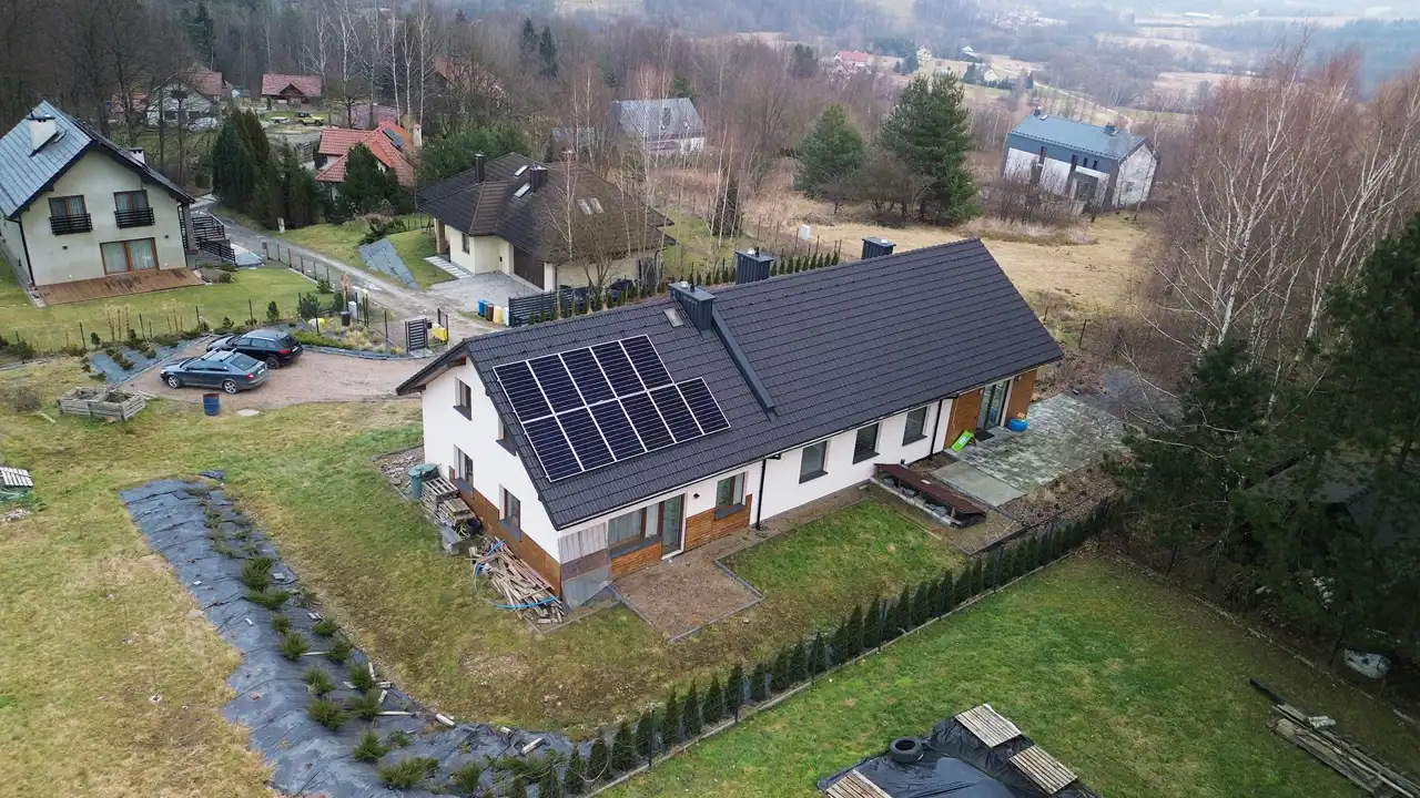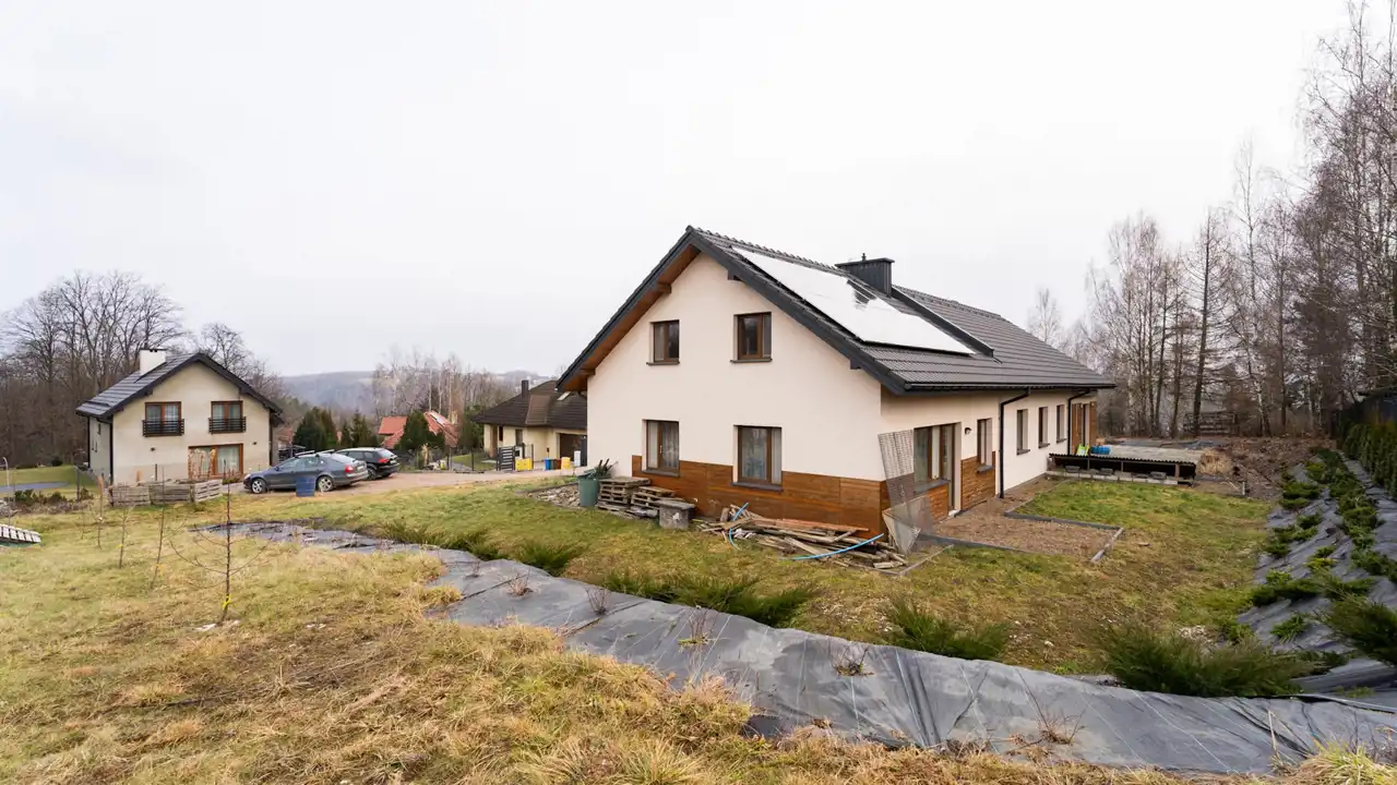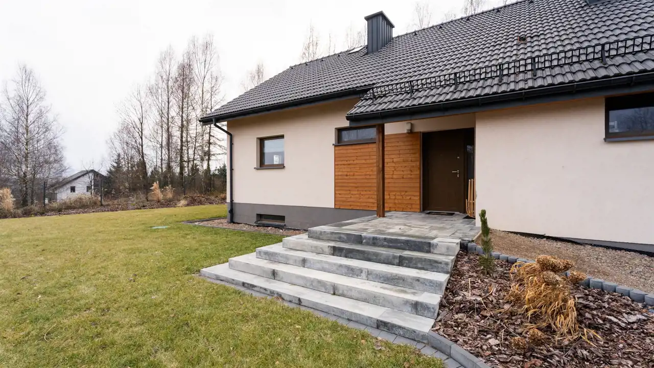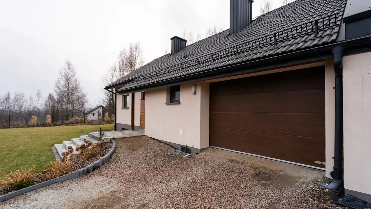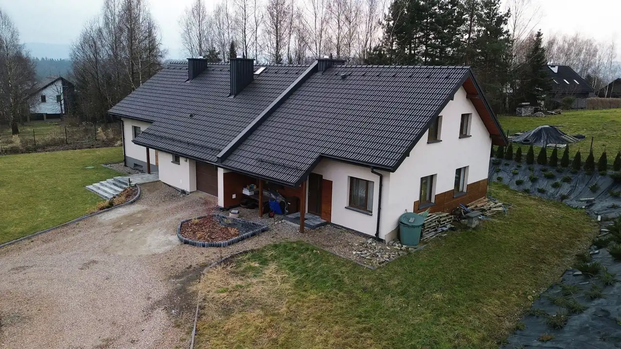 Dom posiada poddasze użytkowe do wykorzystania jako pomieszczenie mieszkalne.