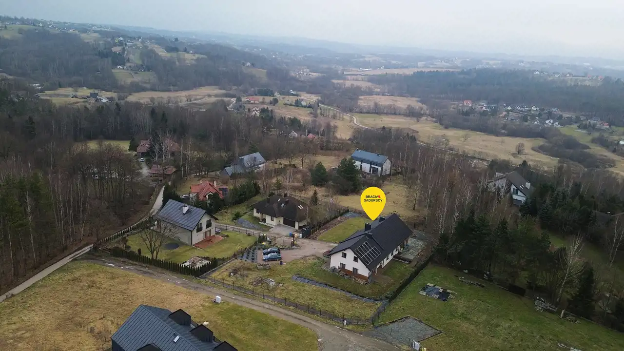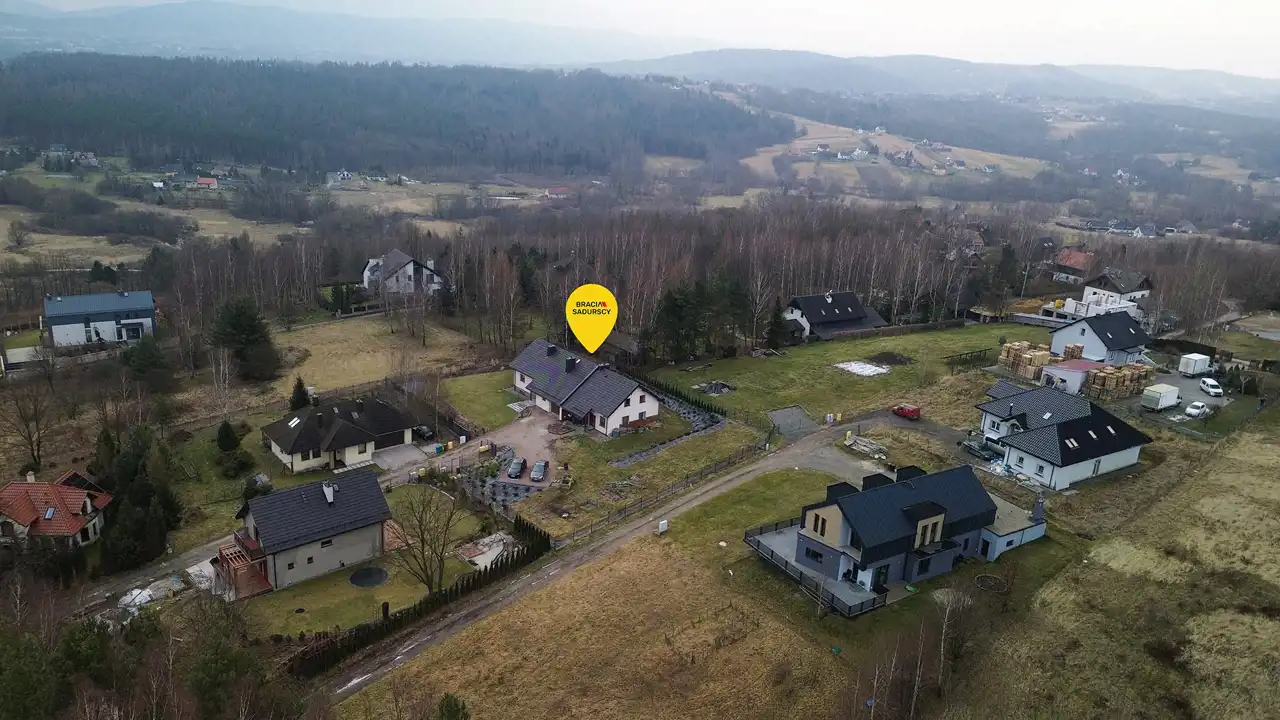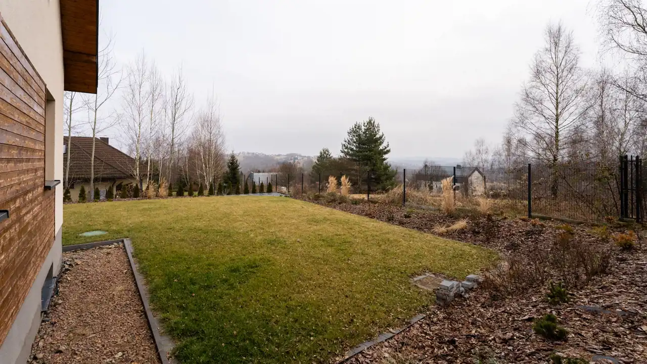 Z działki rozpościera się urzekający, rozległy widok na stromy stok wzgórza ponad doliną Głogoczówki, oraz dalej szczyty Beskidu Wyspowego.