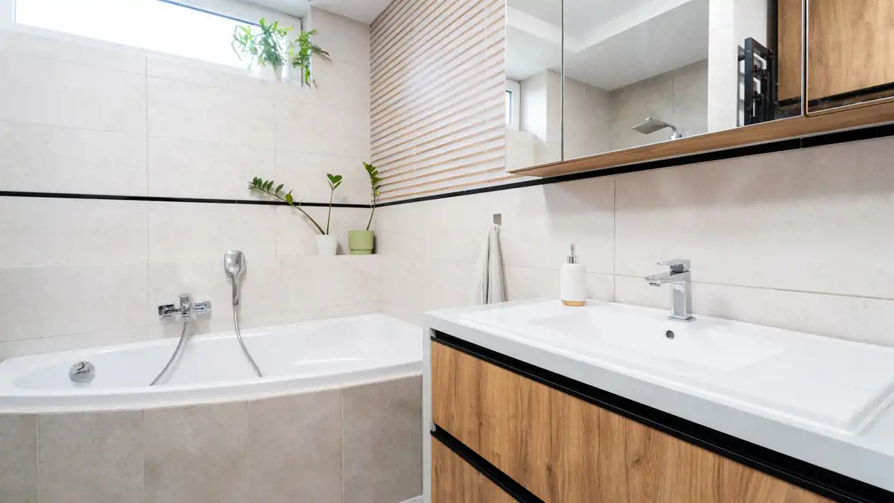 - Pokój kąpielowy z wanną i kabiną natryskową.