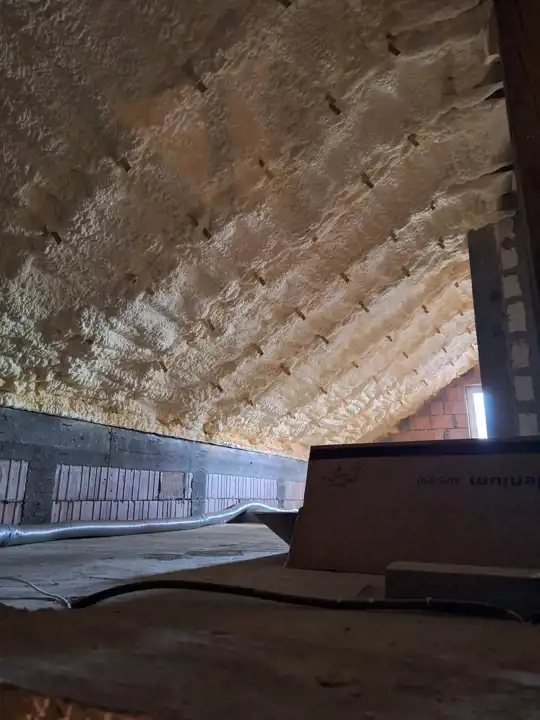- Ściany zewnętrzne wykonano z pustaków ceramicznych Porotherm gr. 25, ocieplone styropianem gr. 15 cm, wykończone tynkiem cienkowarstwowym. Ściany działowe z podobnych pustaków gr. 11,5 m, otynkowane.