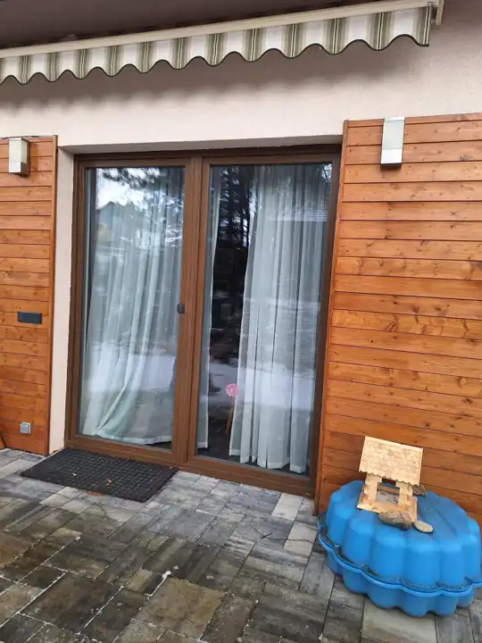 Podłogi w salonie i pokojach wykonane zostały z deski dębowej oliwionej . Stolarka zewnętrzna wysokiej klasy, z drewna.