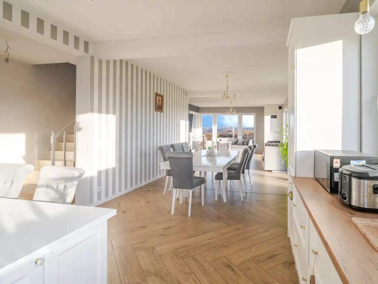 Z salonu jest wyjście na wschodni taras. Na piętrze niezwykłe wrażenie robi taras widokowy, który liczy ponad 40 m2.