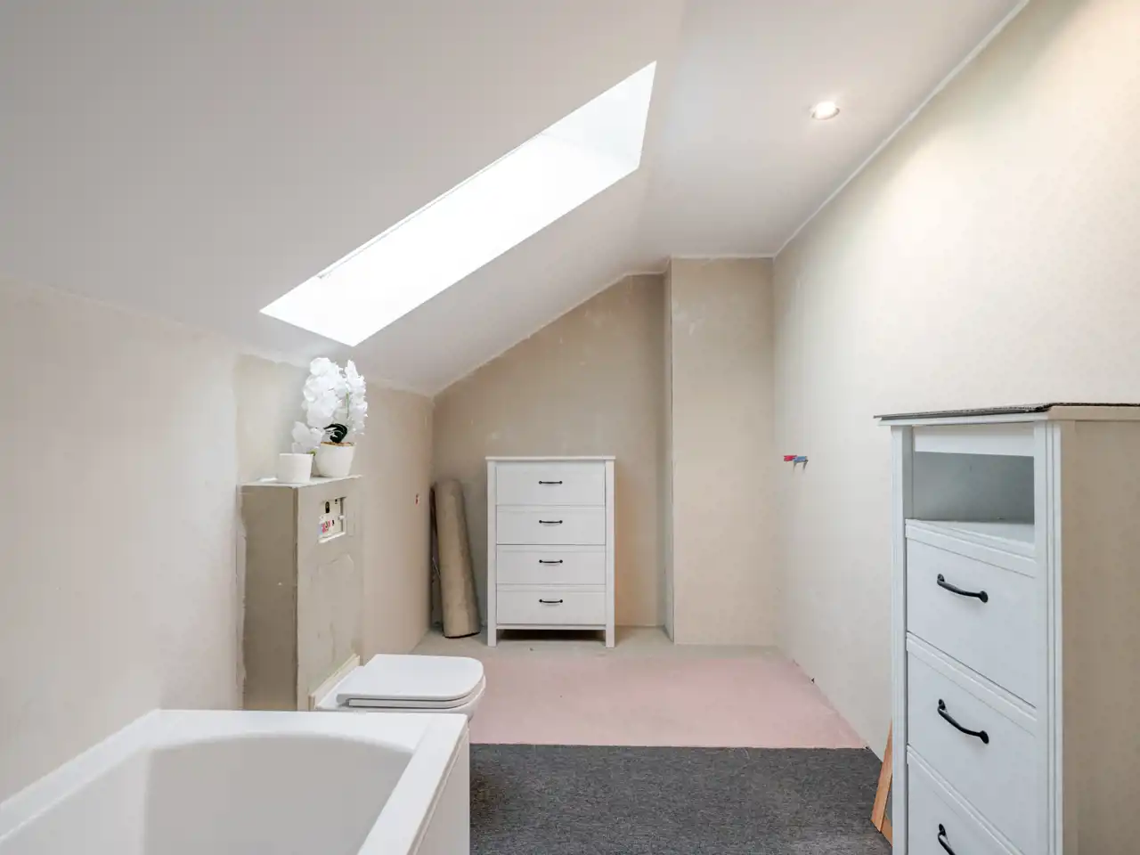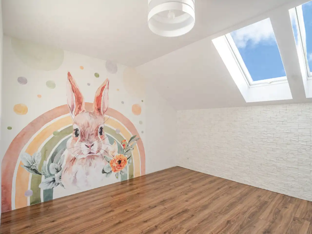 On the ground floor, stoneware tiles imitating wood planks are perfect for underfloor heating or for pets, while on the first floor, laminate flooring is available in the bedrooms.
