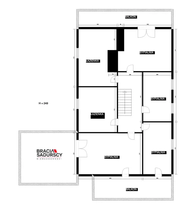 Rozkład pomieszczeń na piętrze ( poddasze):