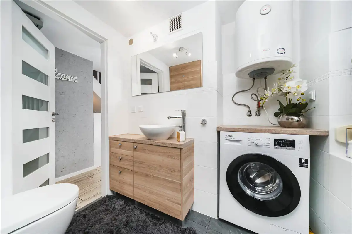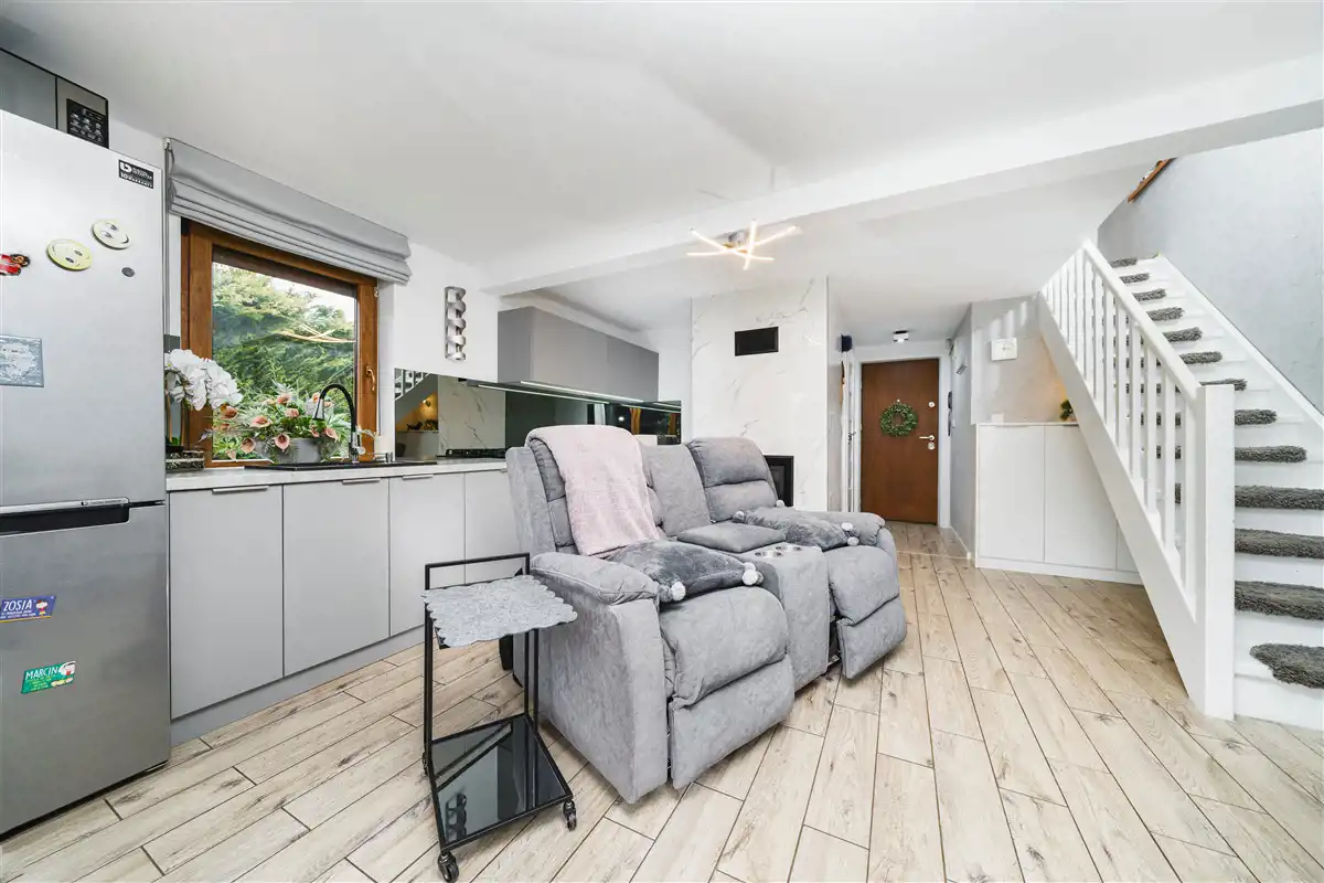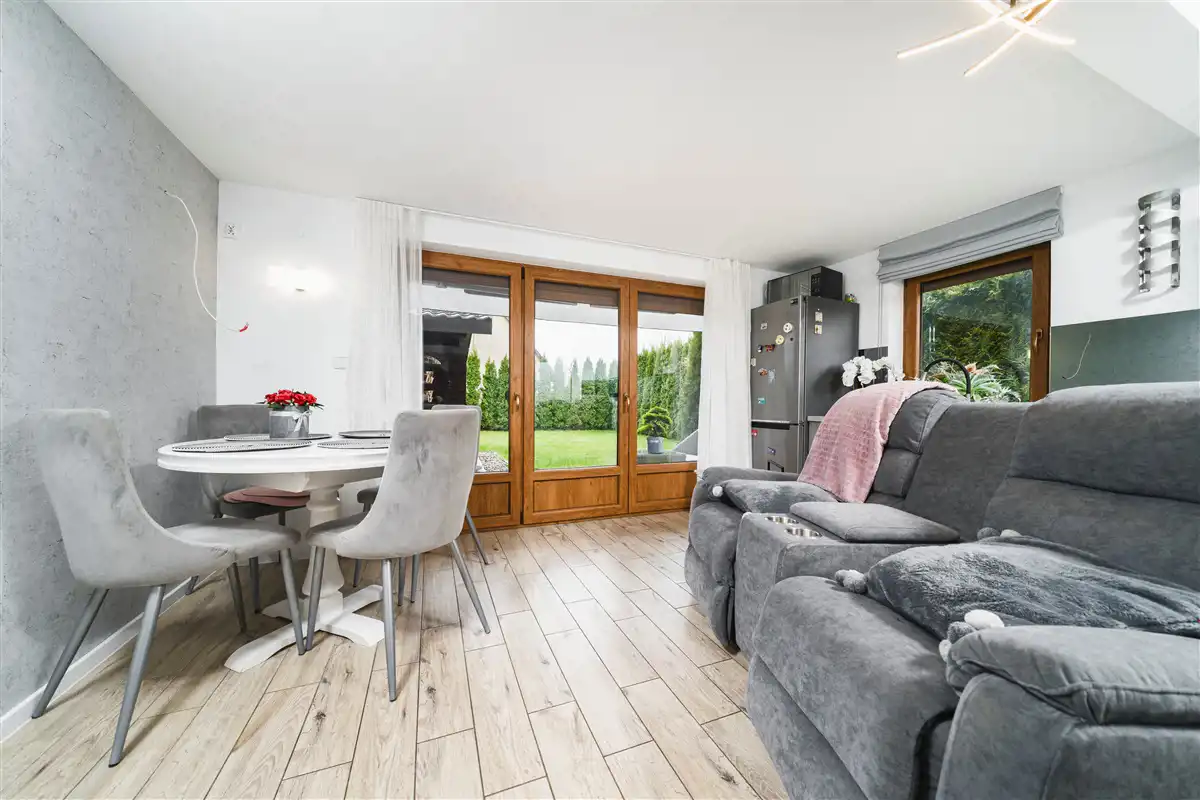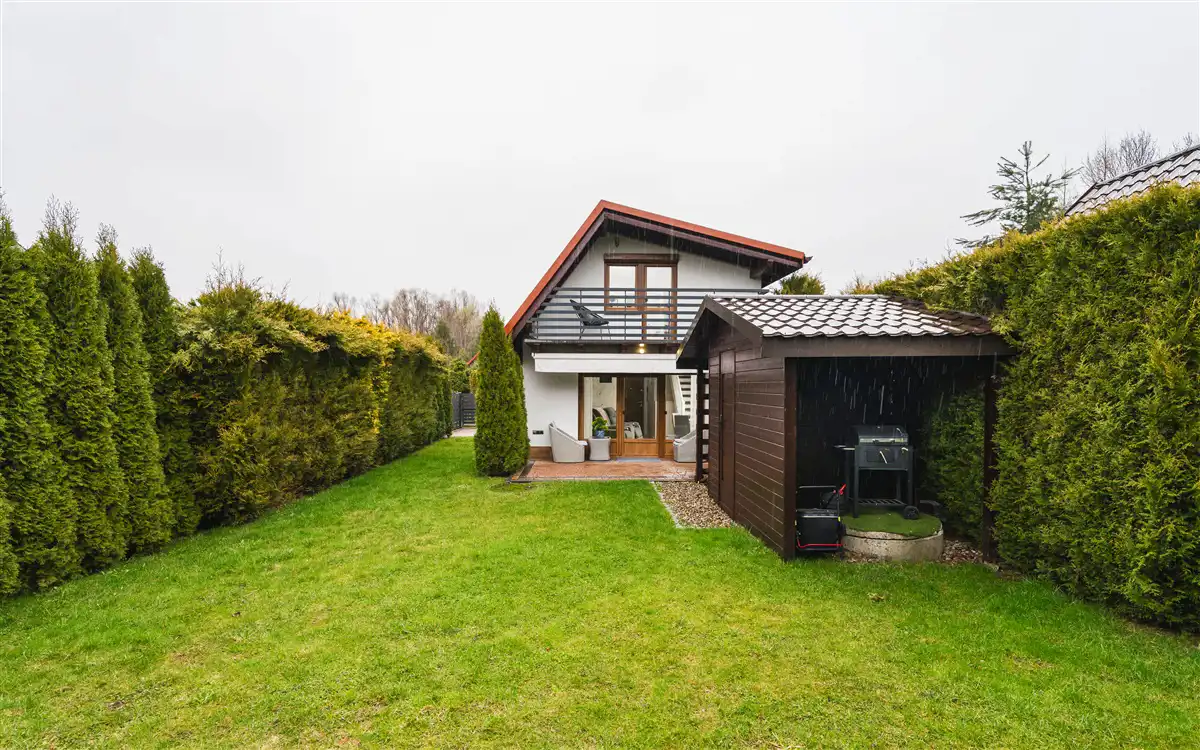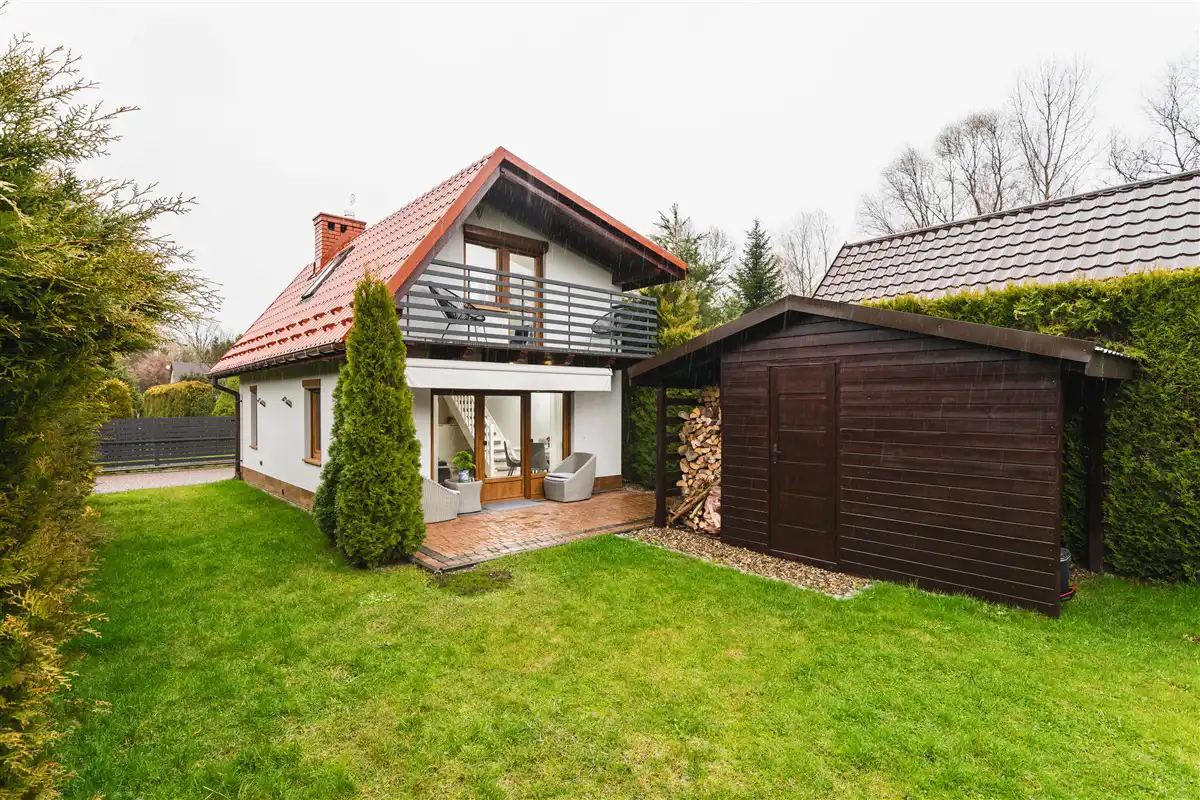 Domek wykończony można powiedzieć ponad standard i sprzedawany z całym wyposażeniem.