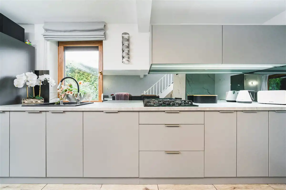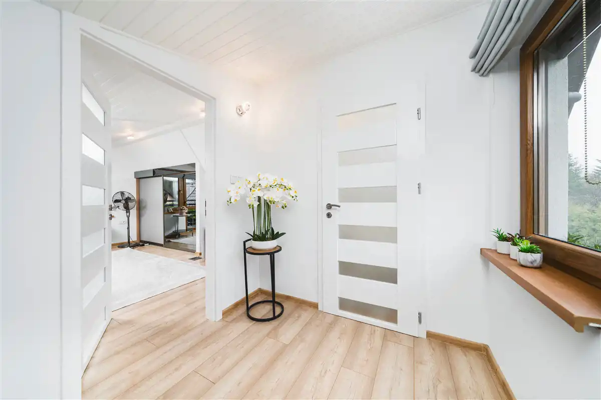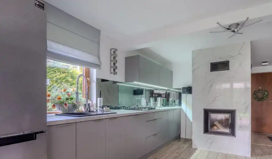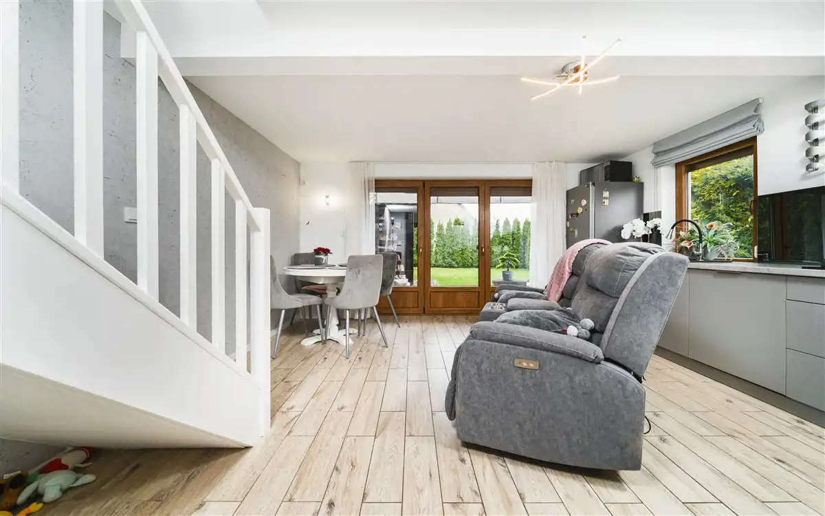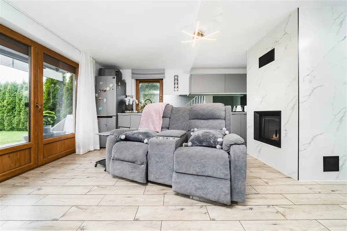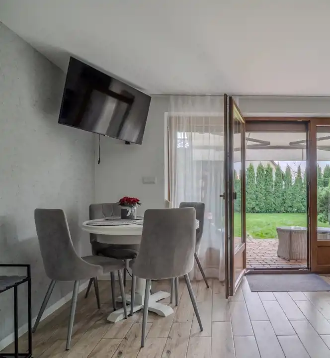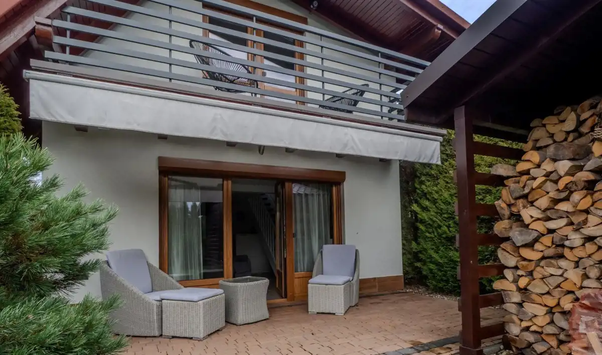 Domek wykończony można powiedzieć ponad standard i sprzedawany z całym wyposażeniem.