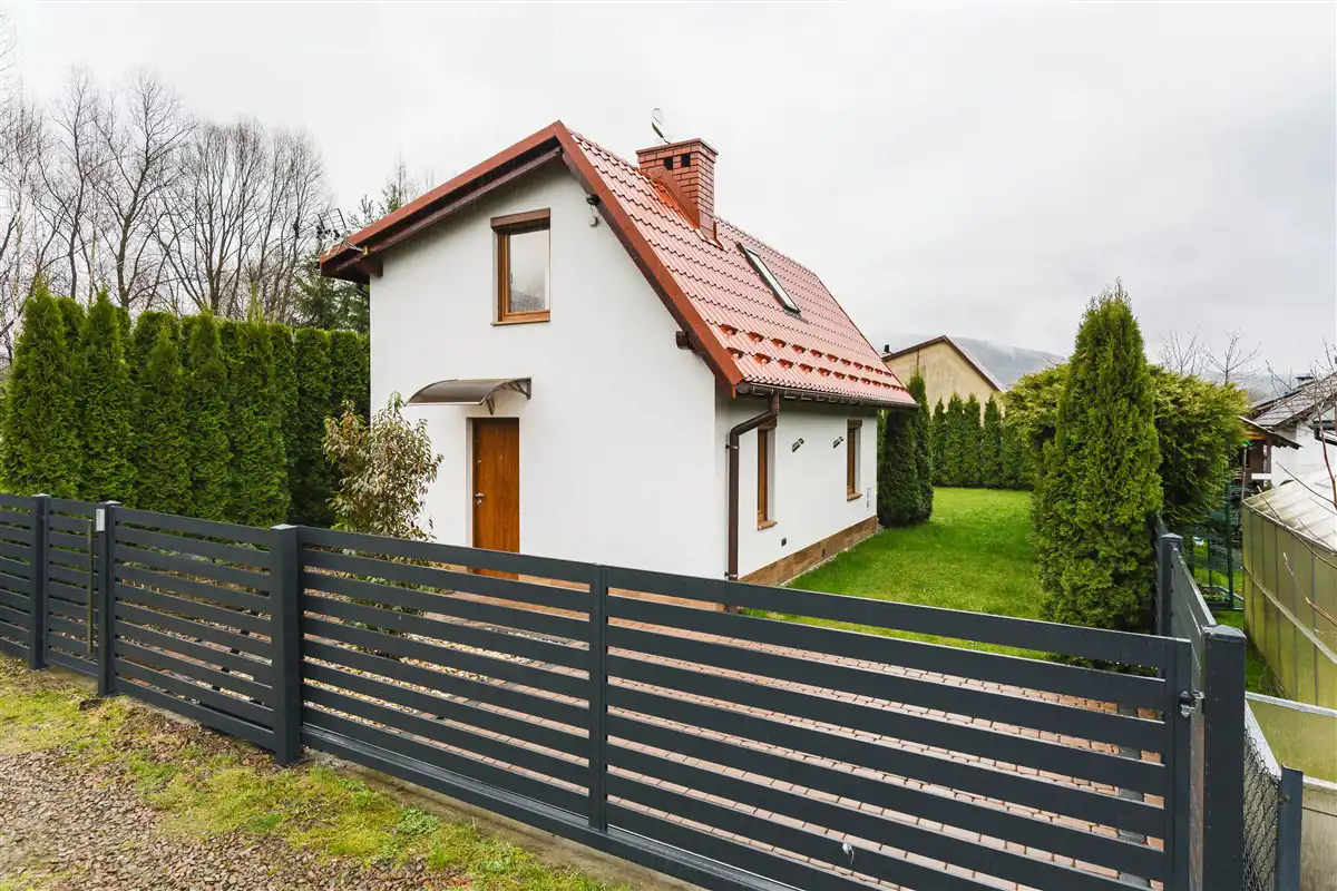 Na dachu założona blacho-dachówka. Domek o powierzchni całkowitej 75 mkw.
