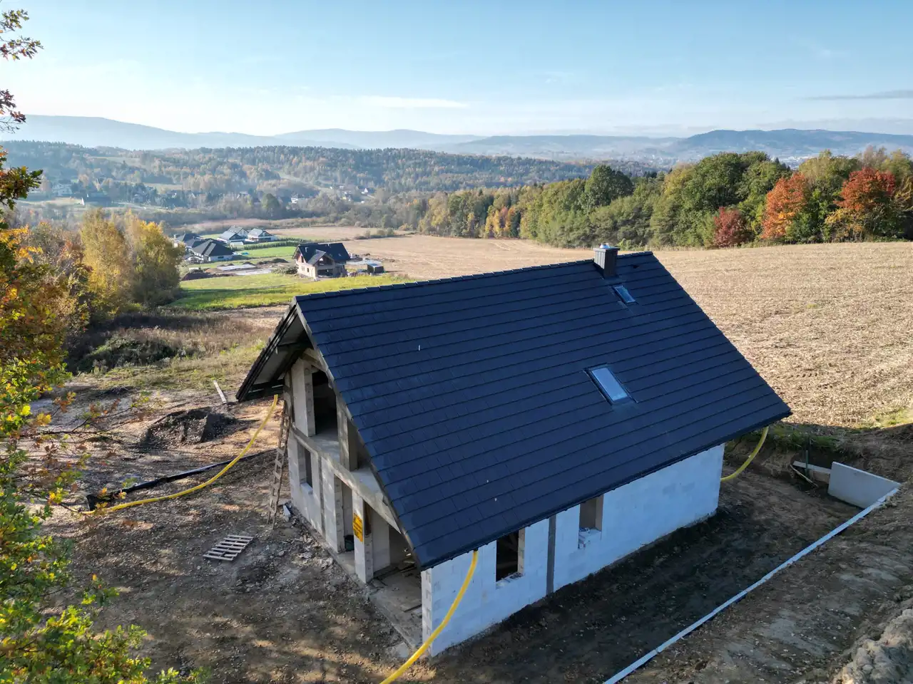 Nowy dom wolnostojący | 134,5 m² | Zawada k. Myślenic | Działka 7 ar | Stan surowy otwarty