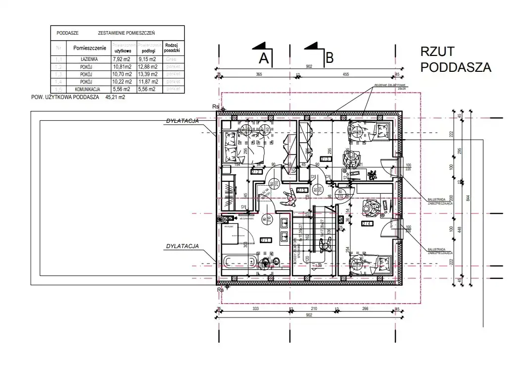 • Dach dwuspadowy w postaci więźby dachowej , pokryty dachówką ceramiczną,