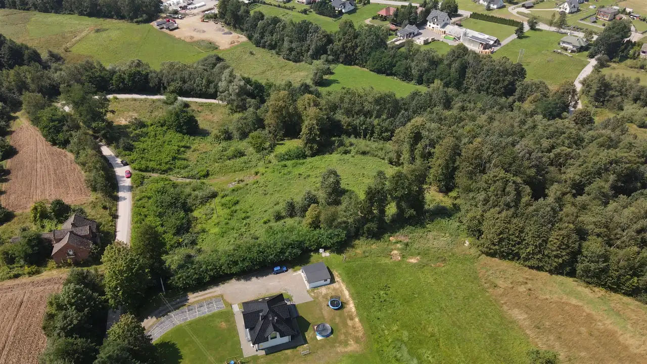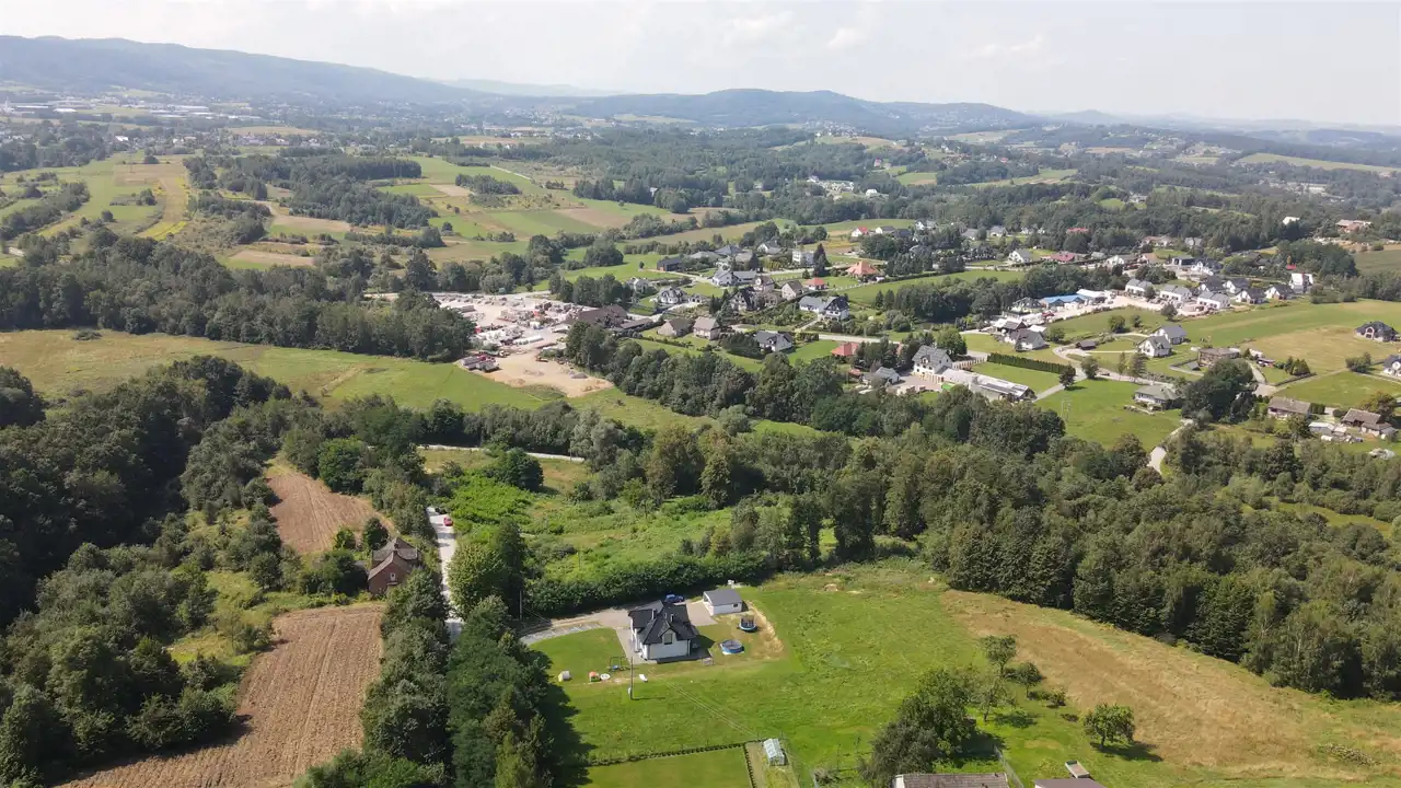 Działka idealna na zabudowę jednorodzinną, łatwa w zaaranżowaniu, ustawna, oferująca piękną panoramę. Bezpośredni dostęp do drogi gminnej, a także udział w wydzielonej drodze wewnętrznej. Droga jeszcze nie wykonana. Panorama rozciągająca się z górnej części jest przepiękna. Widać stąd wzgórza Beskidu Wyspowego, morenowe wzniesienia otaczające Myślenice i dolinę Raby, dobrze widoczny jest także stok narciarski na górze Chełm. Widok otwiera się od Południa aż po Północny-Zachód odsłaniając drogę na pobliską miejscowość Polanka. Teren wznosi się tutaj na ok 290 m. npm, i zapewnia urokliwe zachody słońca.