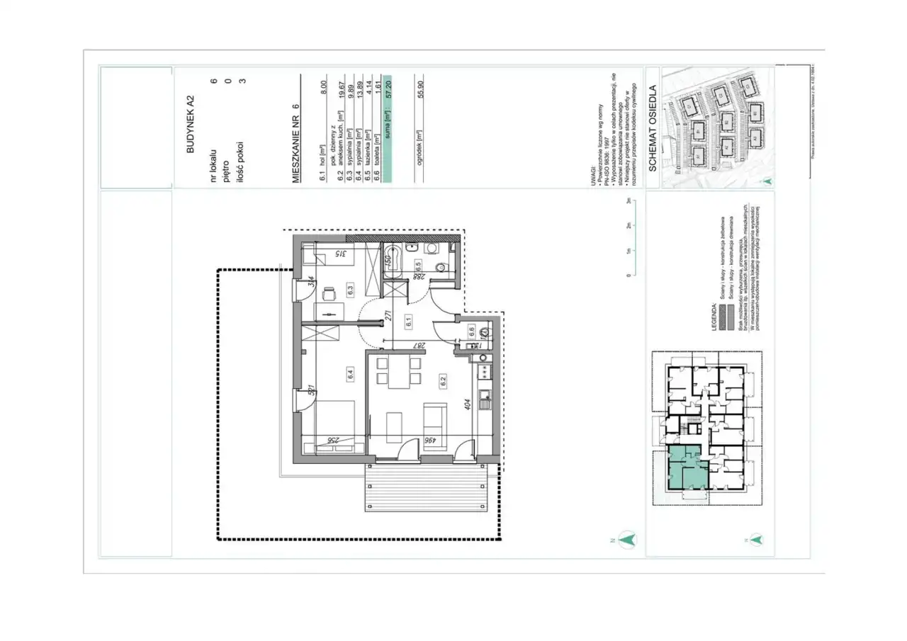 - Charakterystyka mieszkania 57.2 m2, 3 pokoje