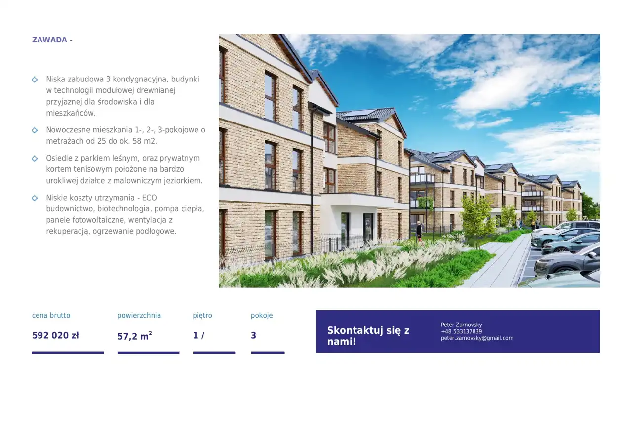 3-pokojowe mieszkanie w ekologicznym osiedlu z pompą ciepła — Zawada