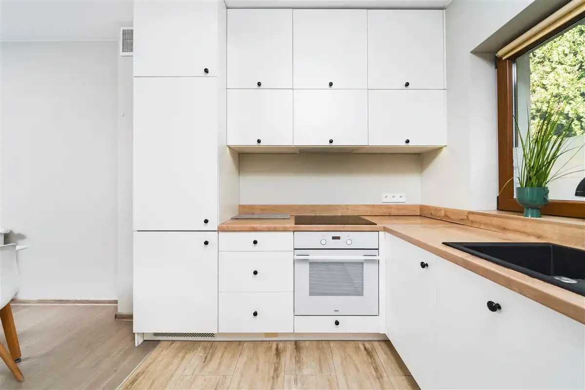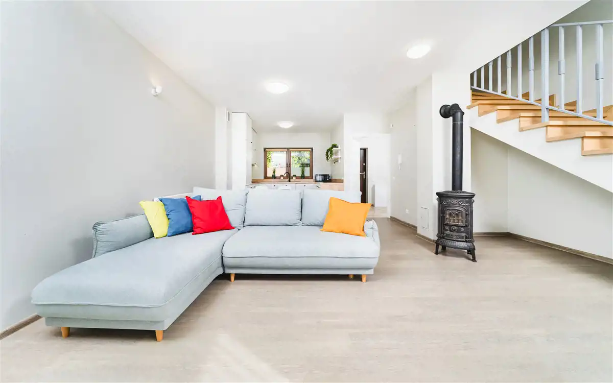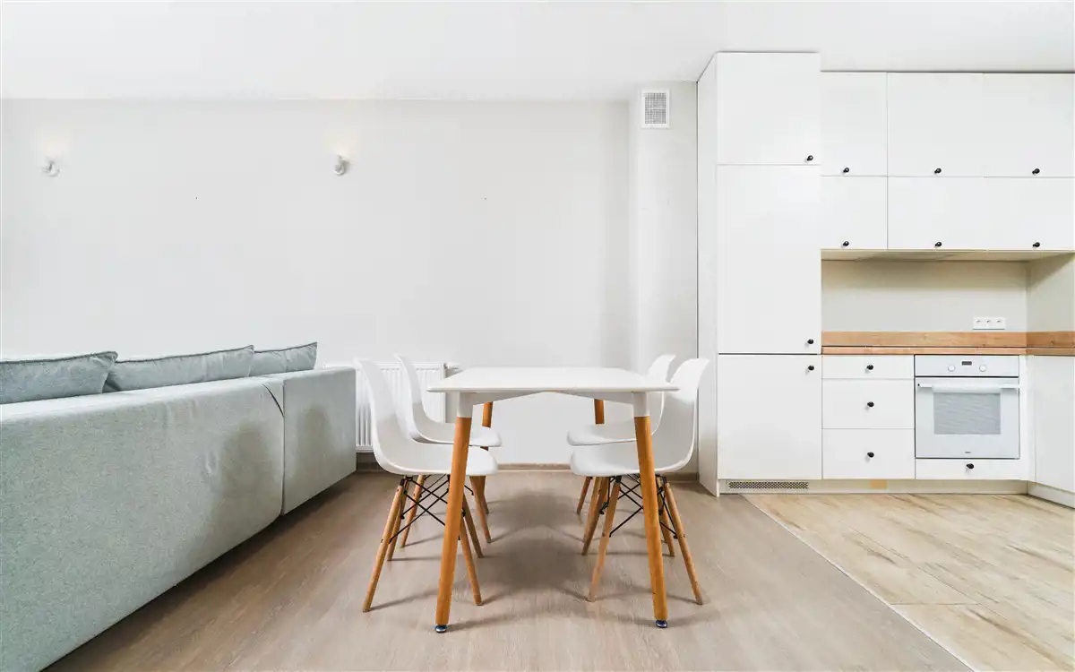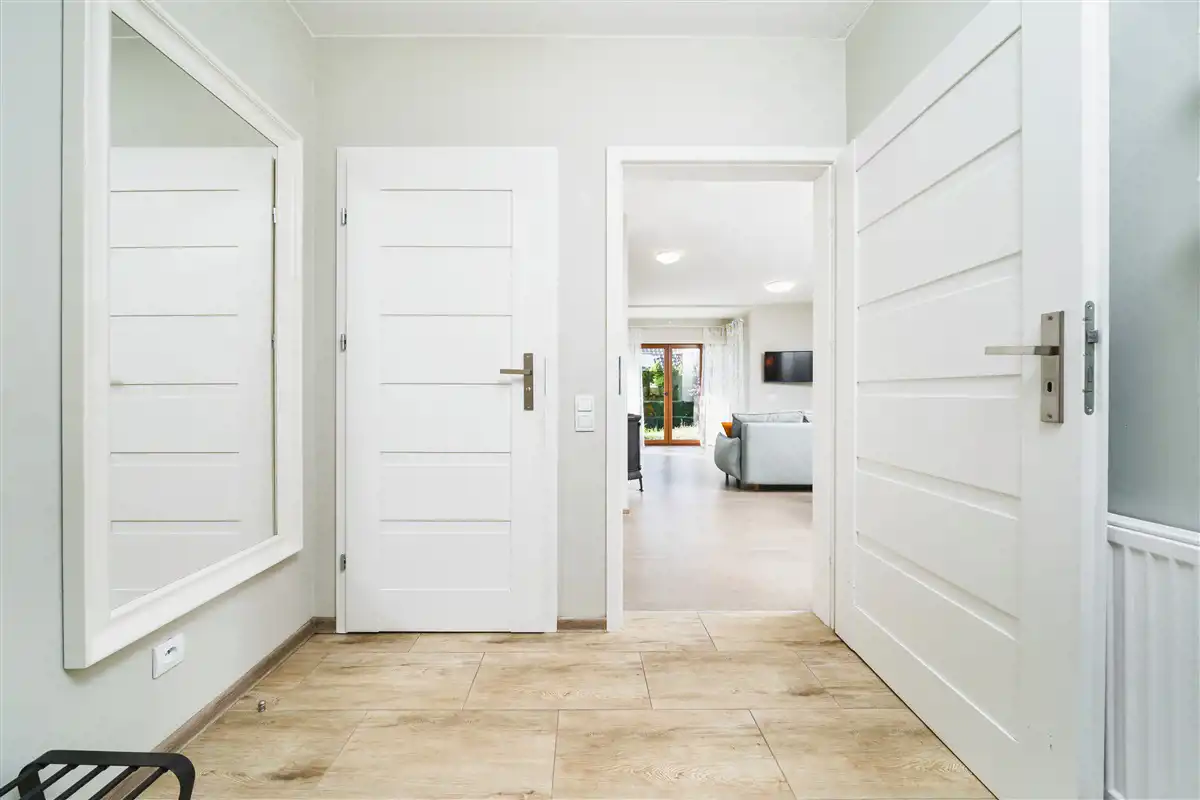 - przestronny salon z aneksem kuchennym (31,43 m2) i wyjściem do ogródka